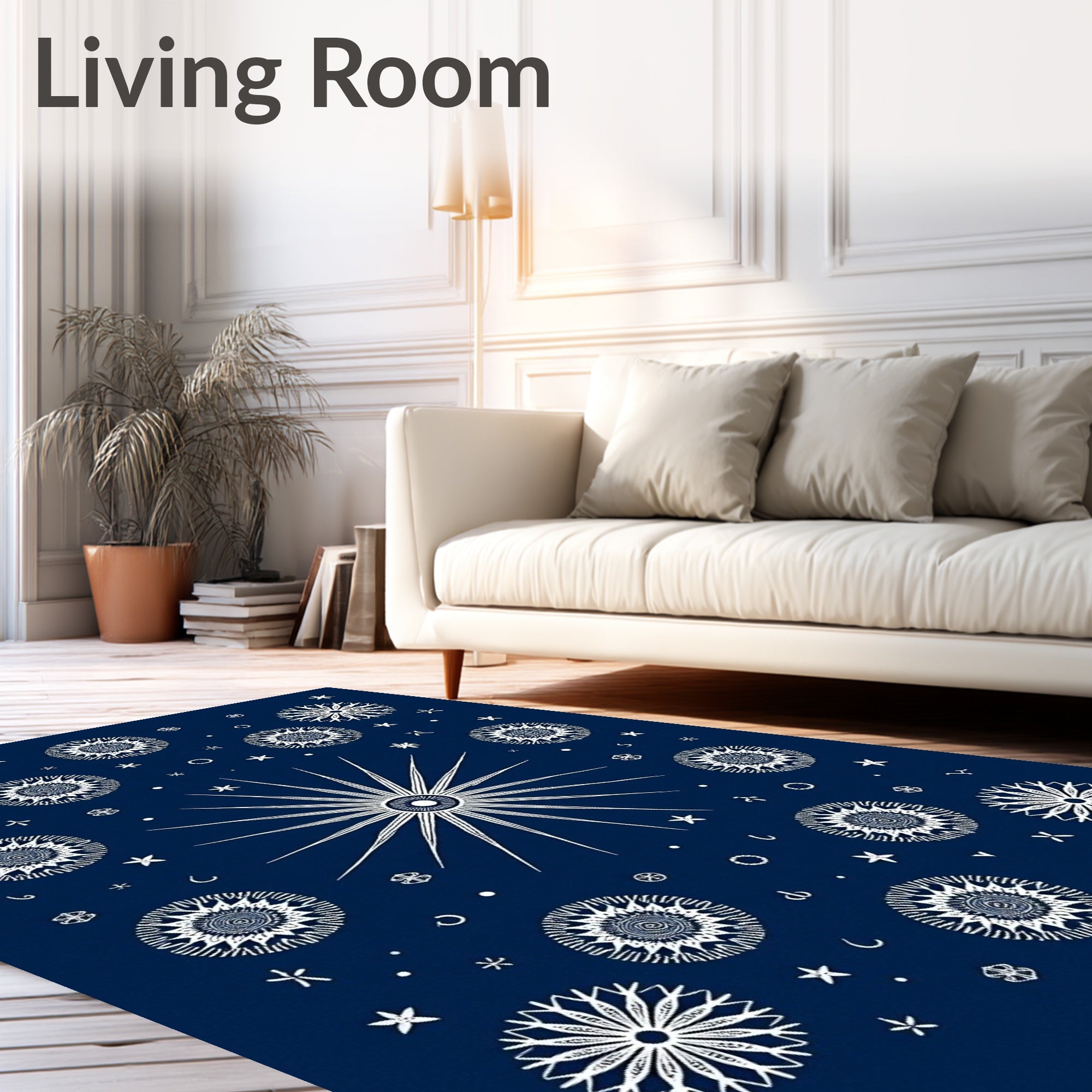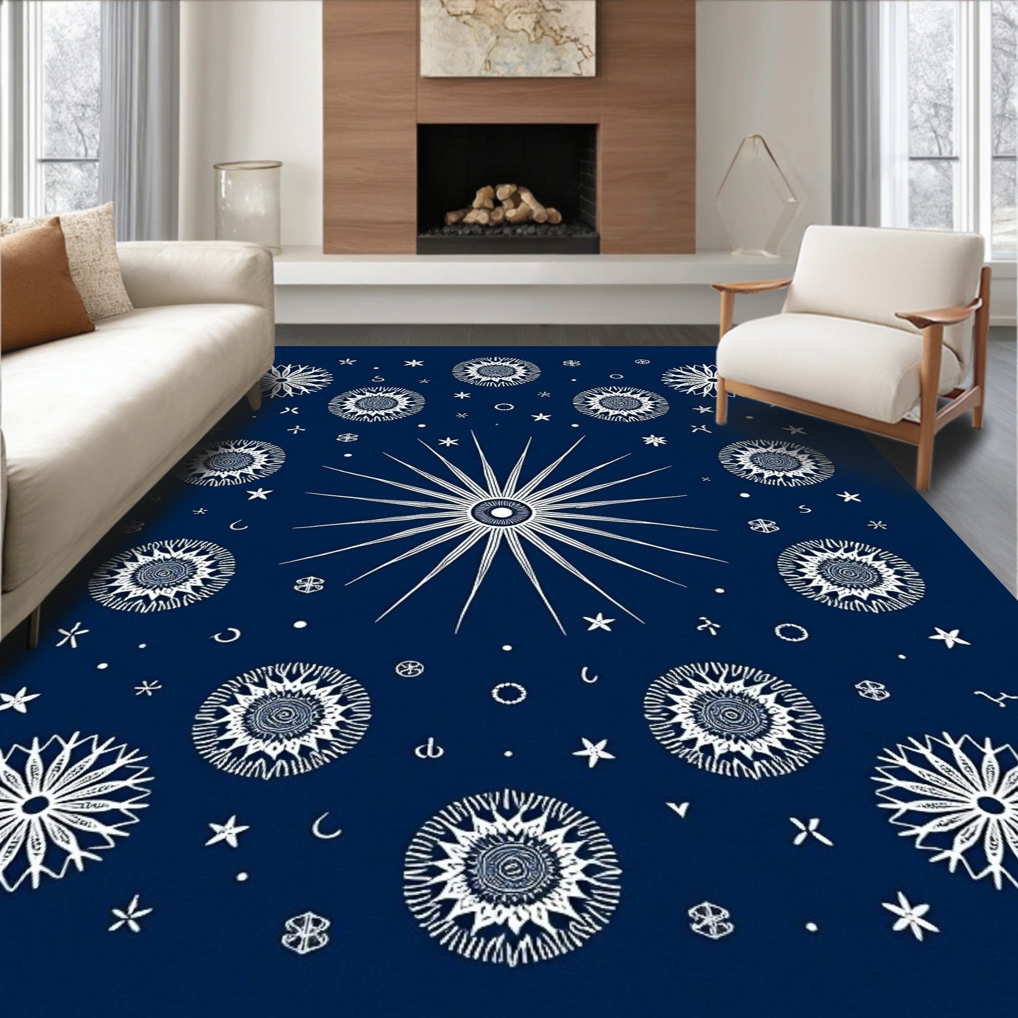 Ultra Soft Area Rug, Non Slip, Stain Resistant, Washable Area Rugs for Living Room, Bedroom, Nordic Constellation with Scandinavian Winter Celestial Theme(Blue) Overview:
