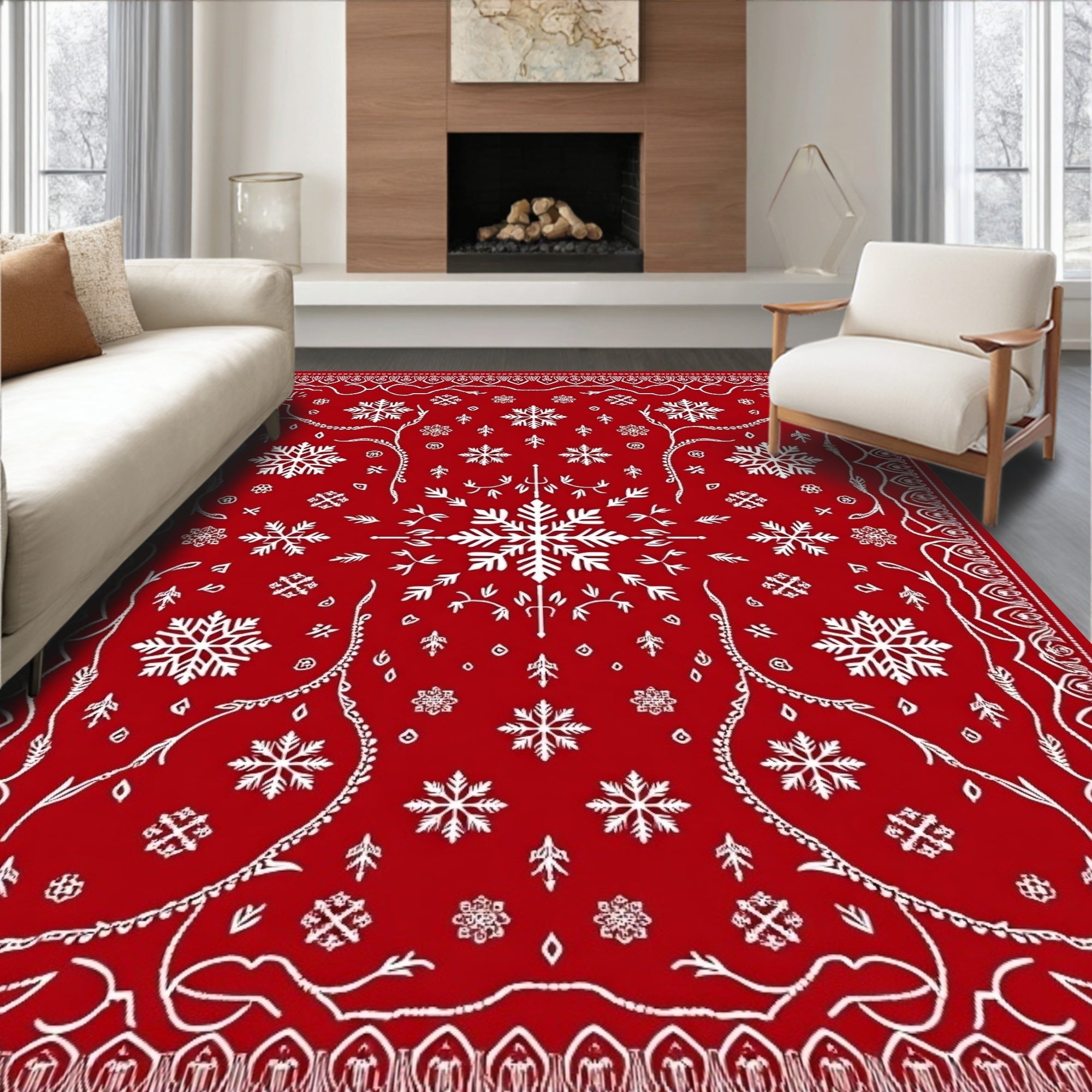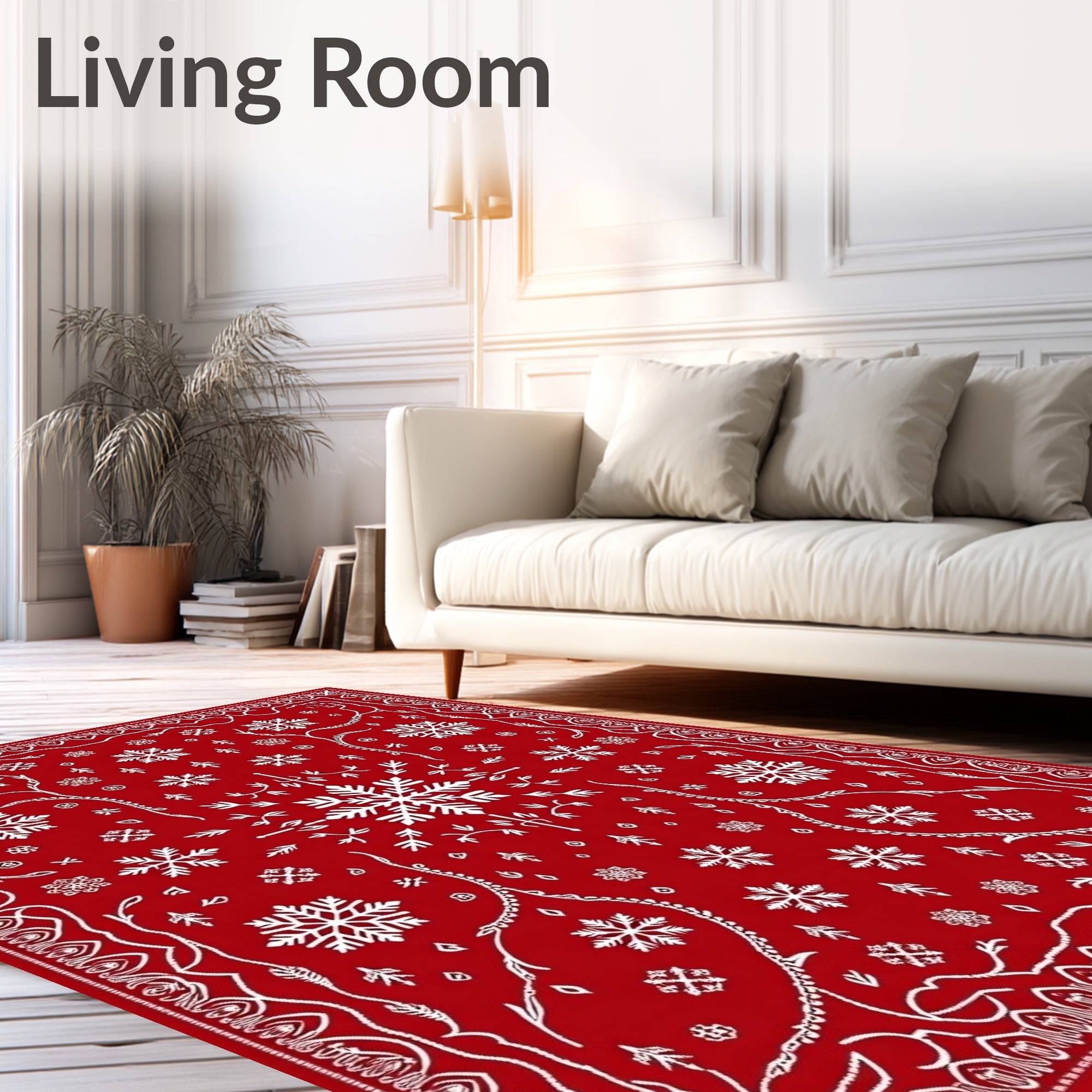 Ultra Soft Area Rug, Non Slip, Stain Resistant, Washable Area Rugs for Living Room, Bedroom, Nordic Crystal Enchanted Winter Wonderland(Red) Overview: