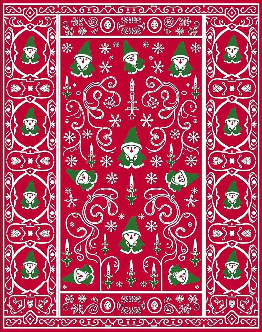 Nordic Gnome Holiday Gathering with Snowflake Motifs and Candle Accents(Red)