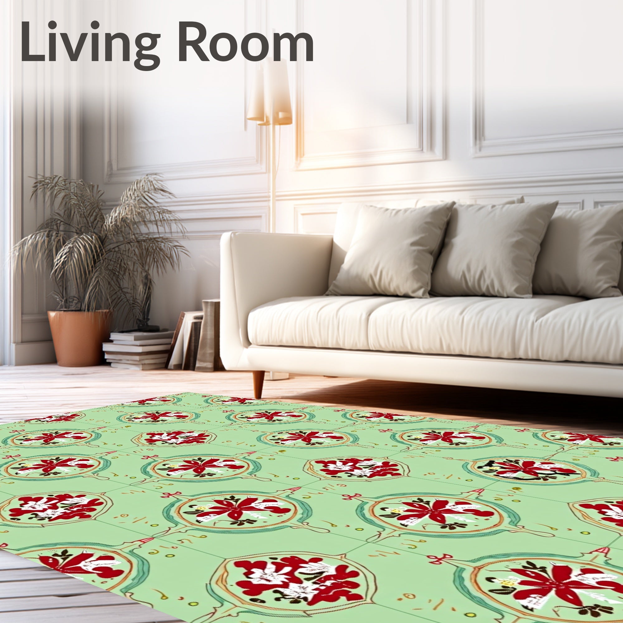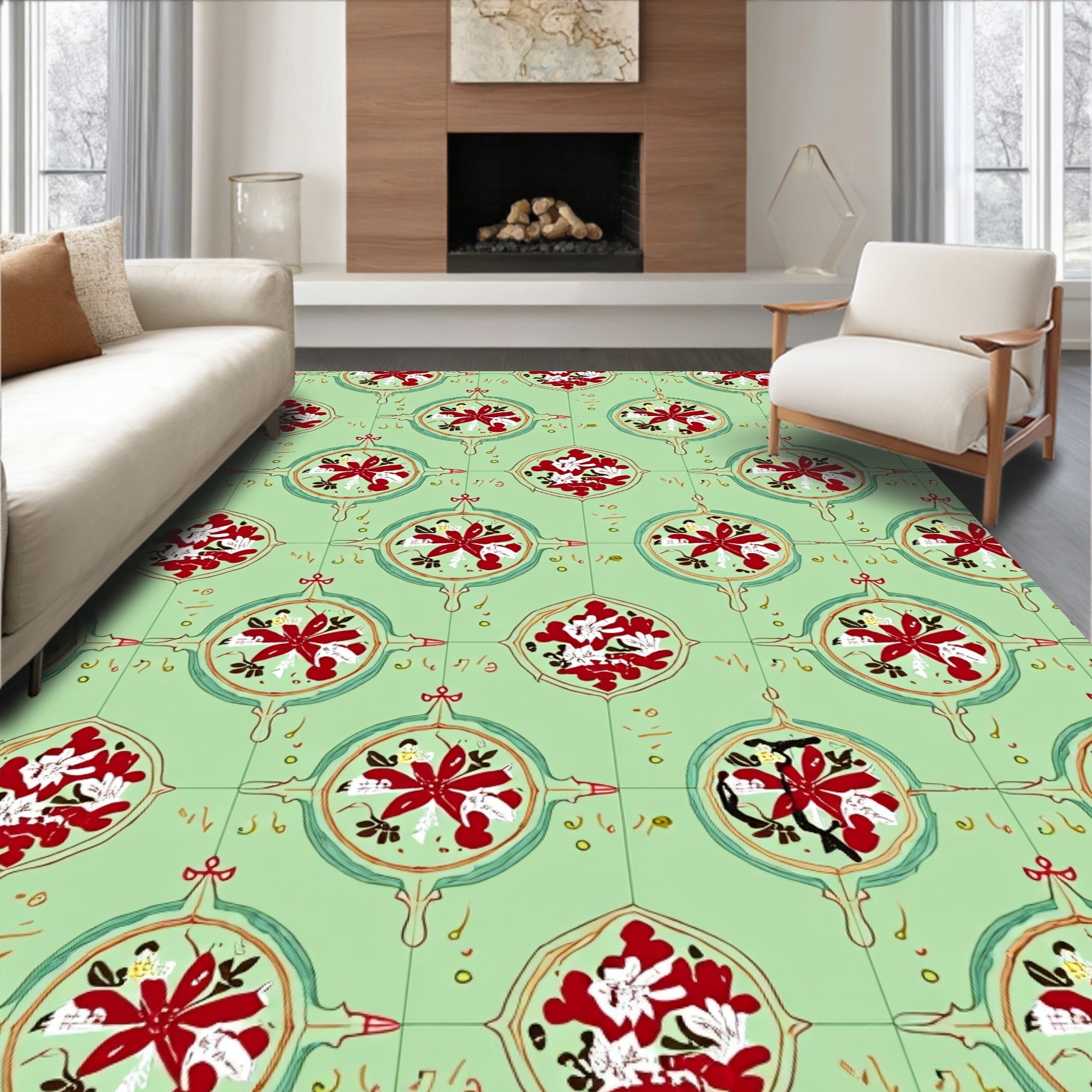 Ultra Soft Area Rug, Non Slip, Stain Resistant, Washable Area Rugs for Living Room, Bedroom, Nordic Pinecone Interlocking with Festive Berry Accents(Green) Overview: