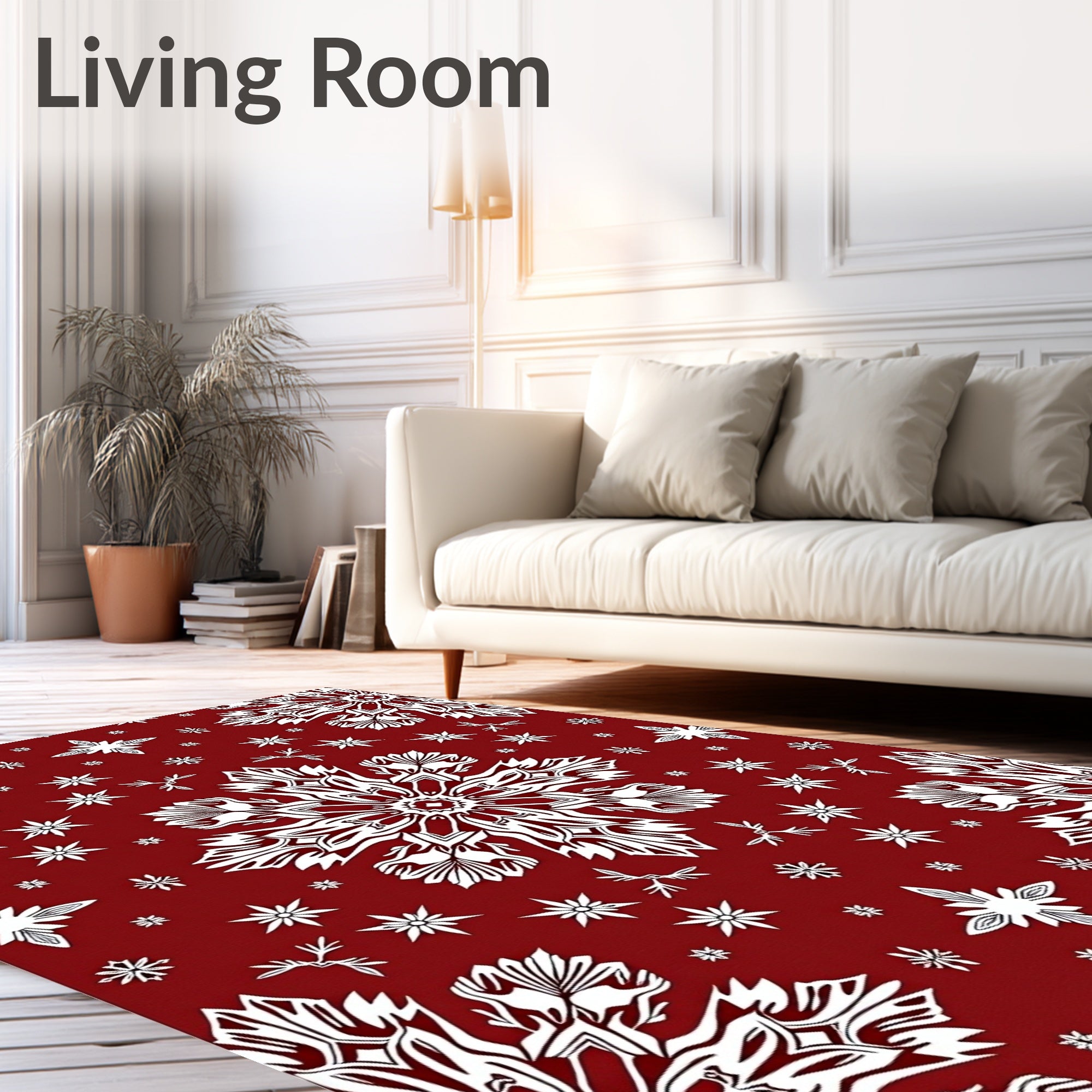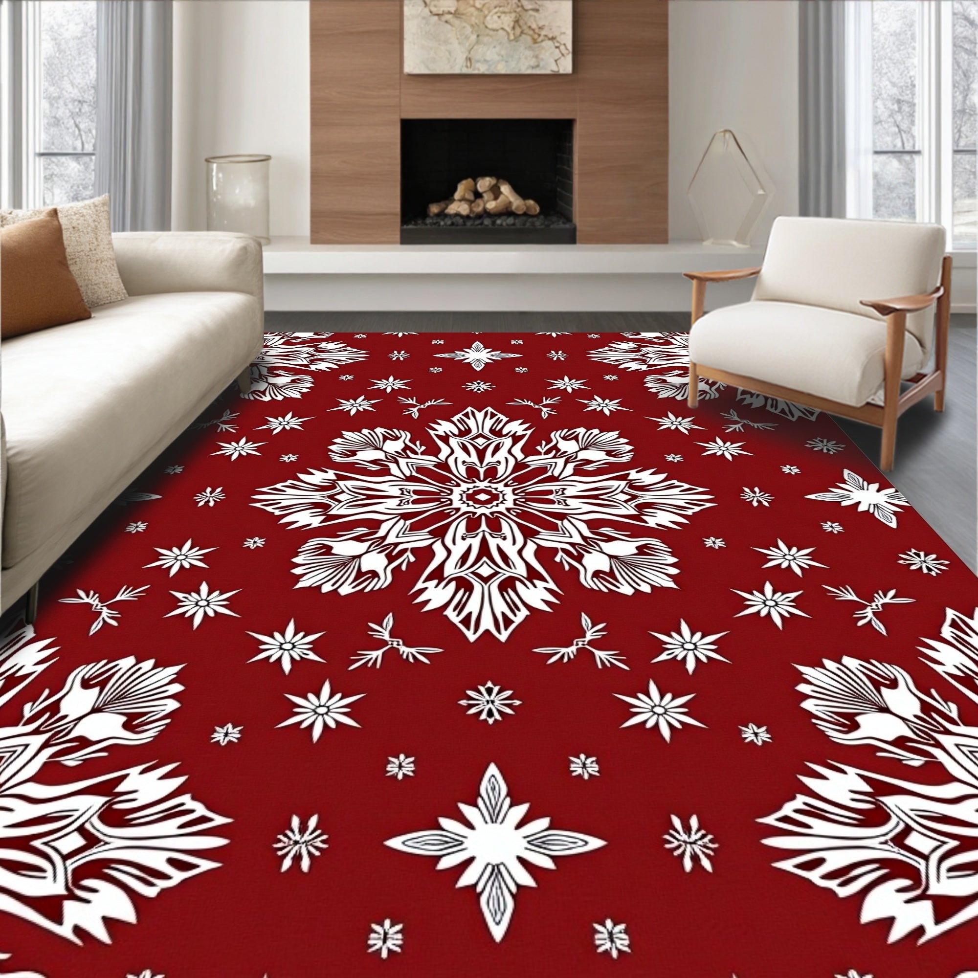 Ultra Soft Area Rug, Non Slip, Stain Resistant, Washable Area Rugs for Living Room, Bedroom, Nordic Snowflake Medallion with Festive Starburst Motifs(Red) Overview: