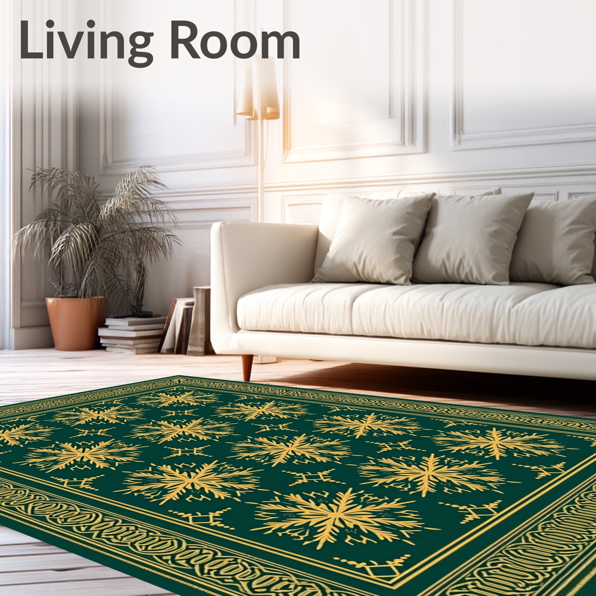 Ultra Soft Area Rug, Non Slip, Stain Resistant, Washable Area Rugs for Living Room, Bedroom, Nordic Snowflake Medallion with Interlocking Filigree and Festive Motifs(Green) Overview: