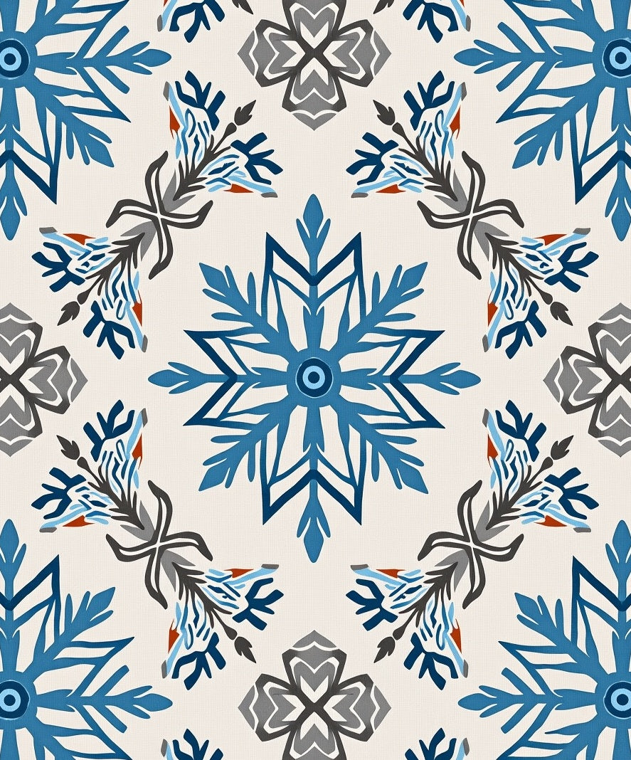 Nordic Snowflake Medley Interlocking Winter Holiday Motif(Ivory)