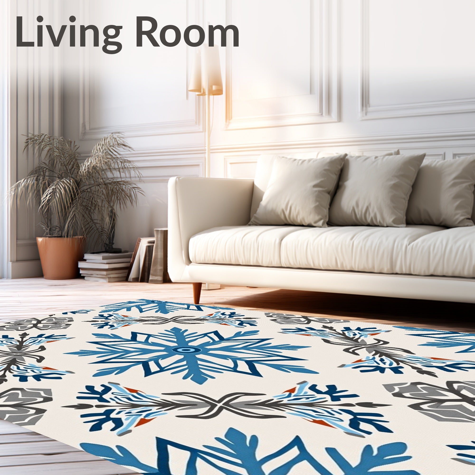 Ultra Soft Area Rug, Non Slip, Stain Resistant, Washable Area Rugs for Living Room, Bedroom, Nordic Snowflake Medley Interlocking Winter Holiday Motif(Ivory) Overview: