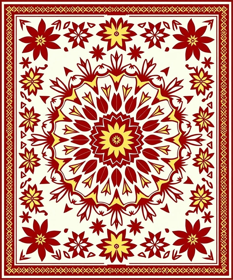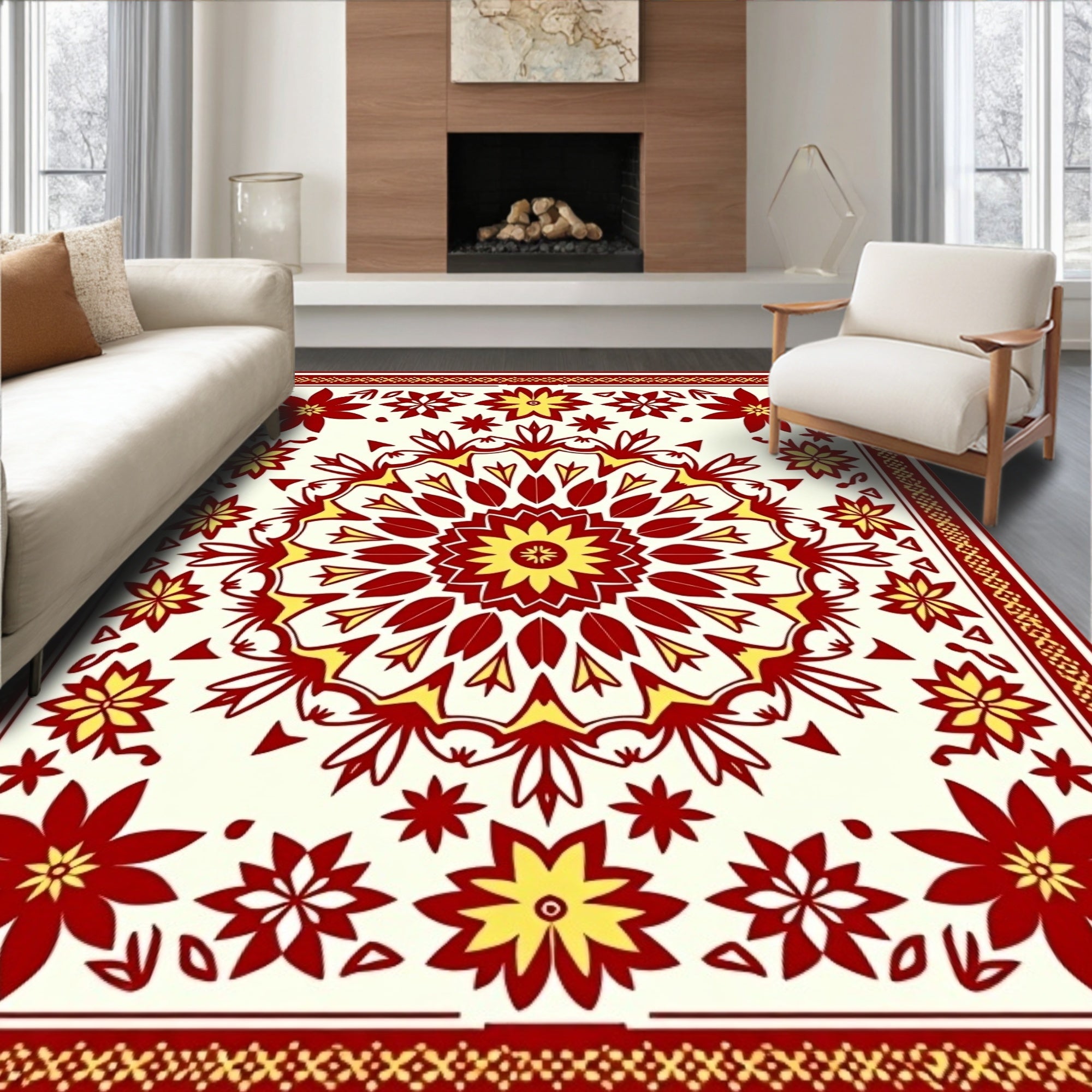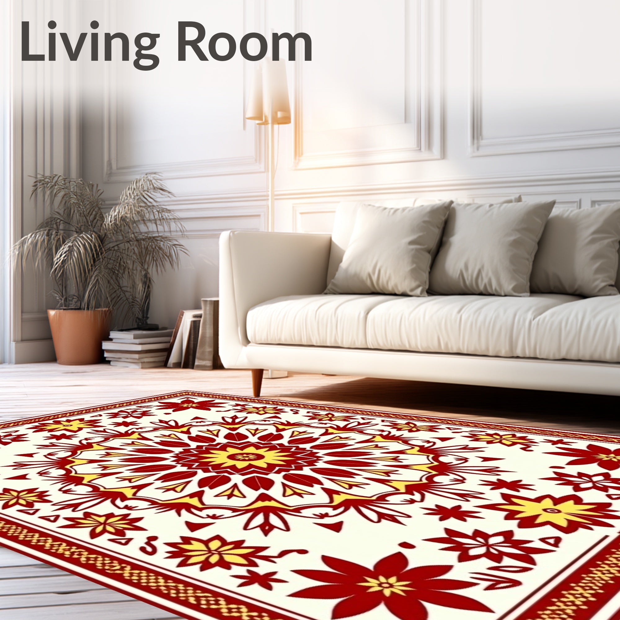 Ultra Soft Area Rug, Non Slip, Stain Resistant, Washable Area Rugs for Living Room, Bedroom, Nordic Starburst Boho Tapestry with Festive Embellishments(Red) Overview: