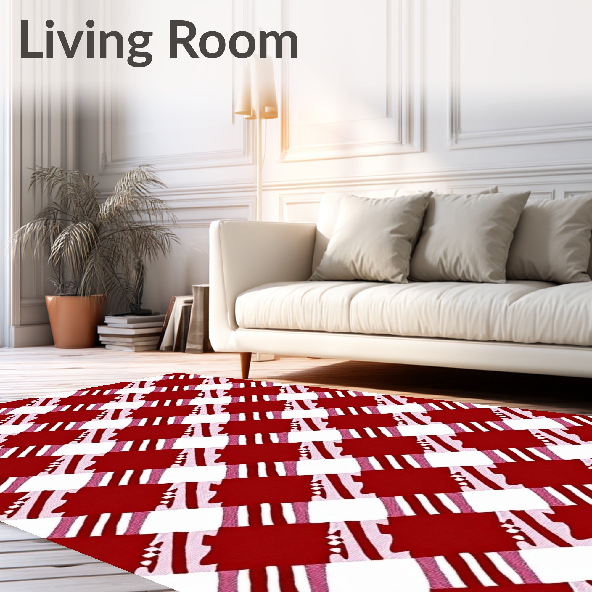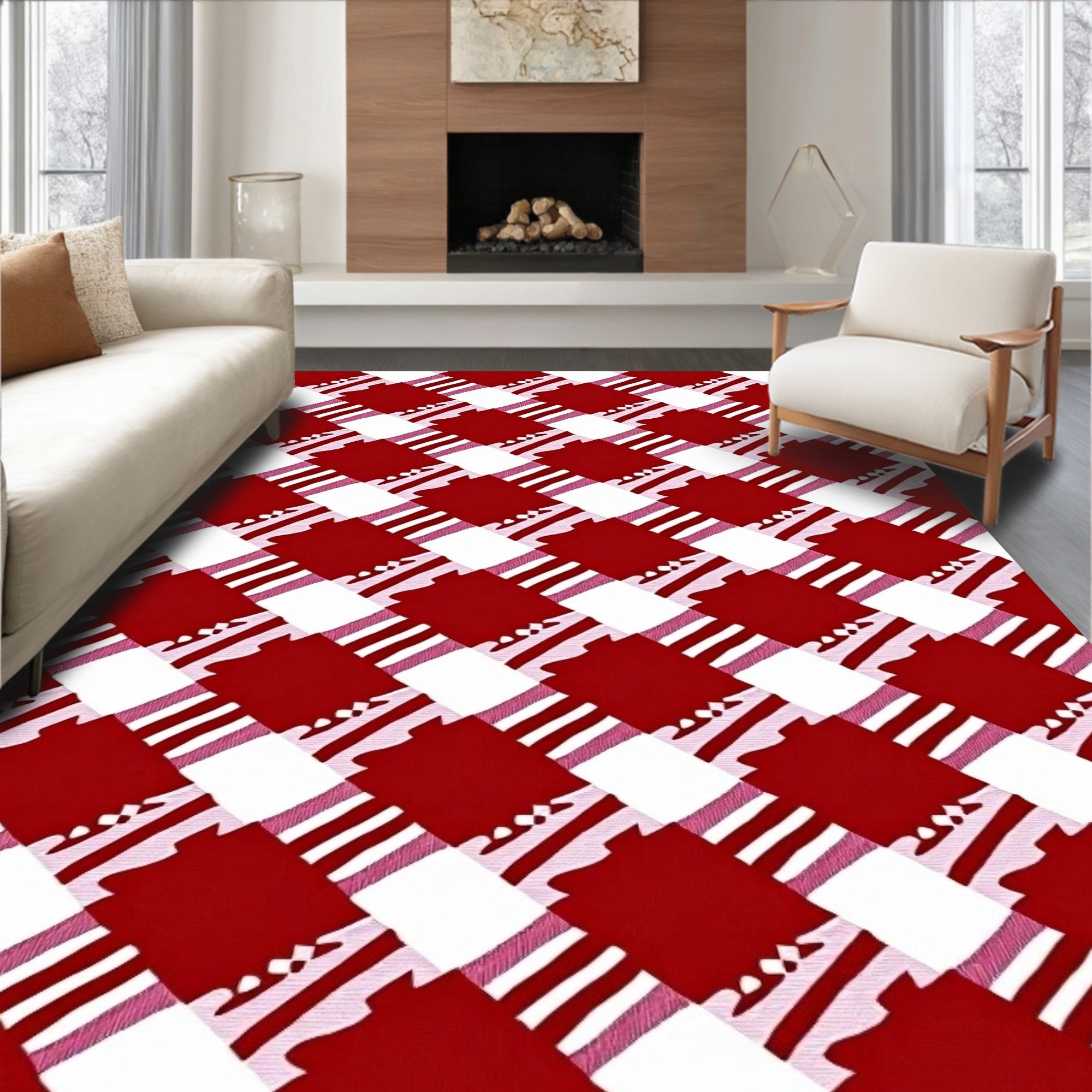 Ultra Soft Area Rug, Non Slip, Stain Resistant, Washable Area Rugs for Living Room, Bedroom, Nordic Winter Gingham Decorative Accent(Red) Overview: