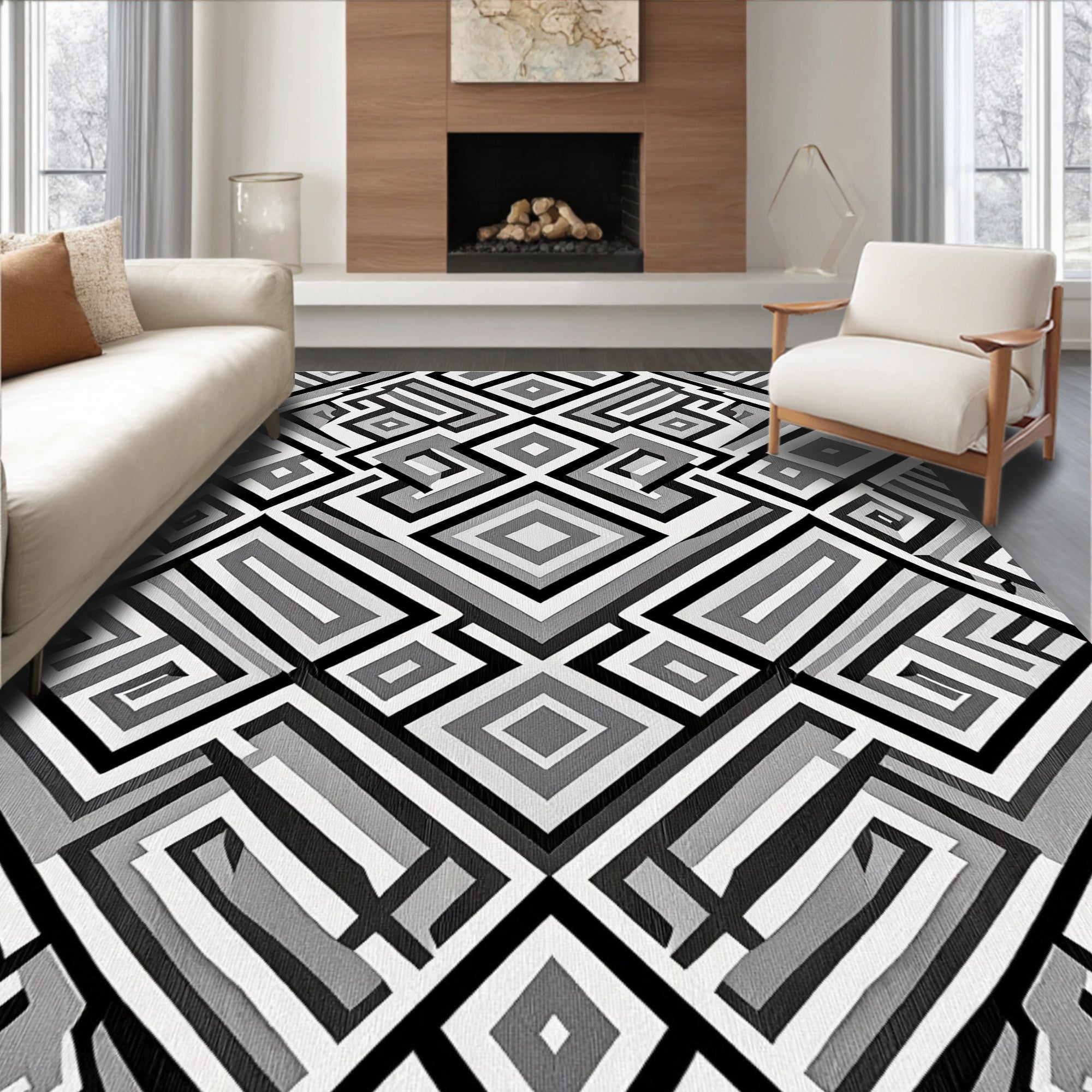 Ultra Soft Area Rug, Non Slip, Stain Resistant, Washable Area Rugs for Living Room, Bedroom, Nordic Winter Lattice Tapestry(Black) Overview: