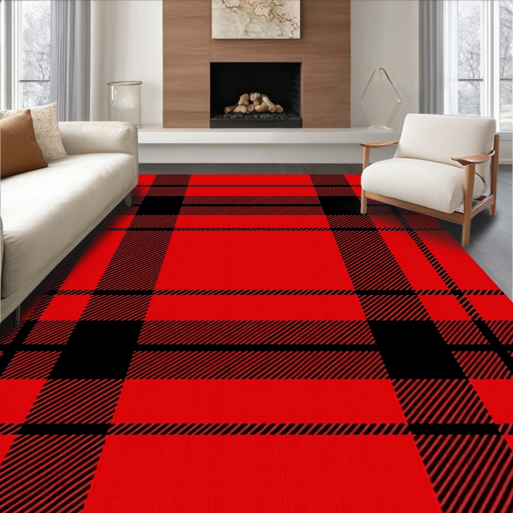 Ultra Soft Area Rug, Non Slip, Stain Resistant, Washable Area Rugs for Living Room, Bedroom, Nordic Winter Plaid with Scandinavian Starburst Accents(Red) Overview: