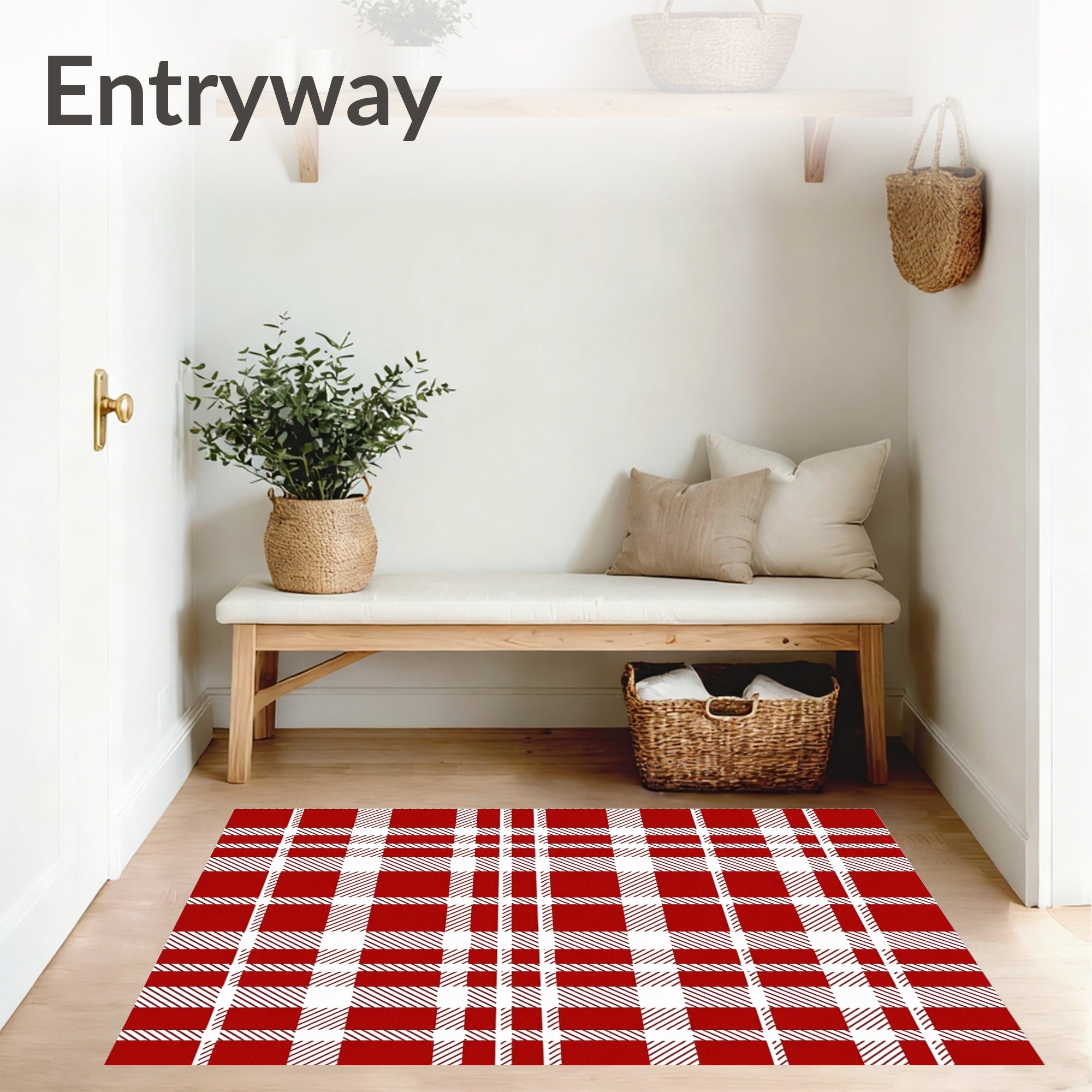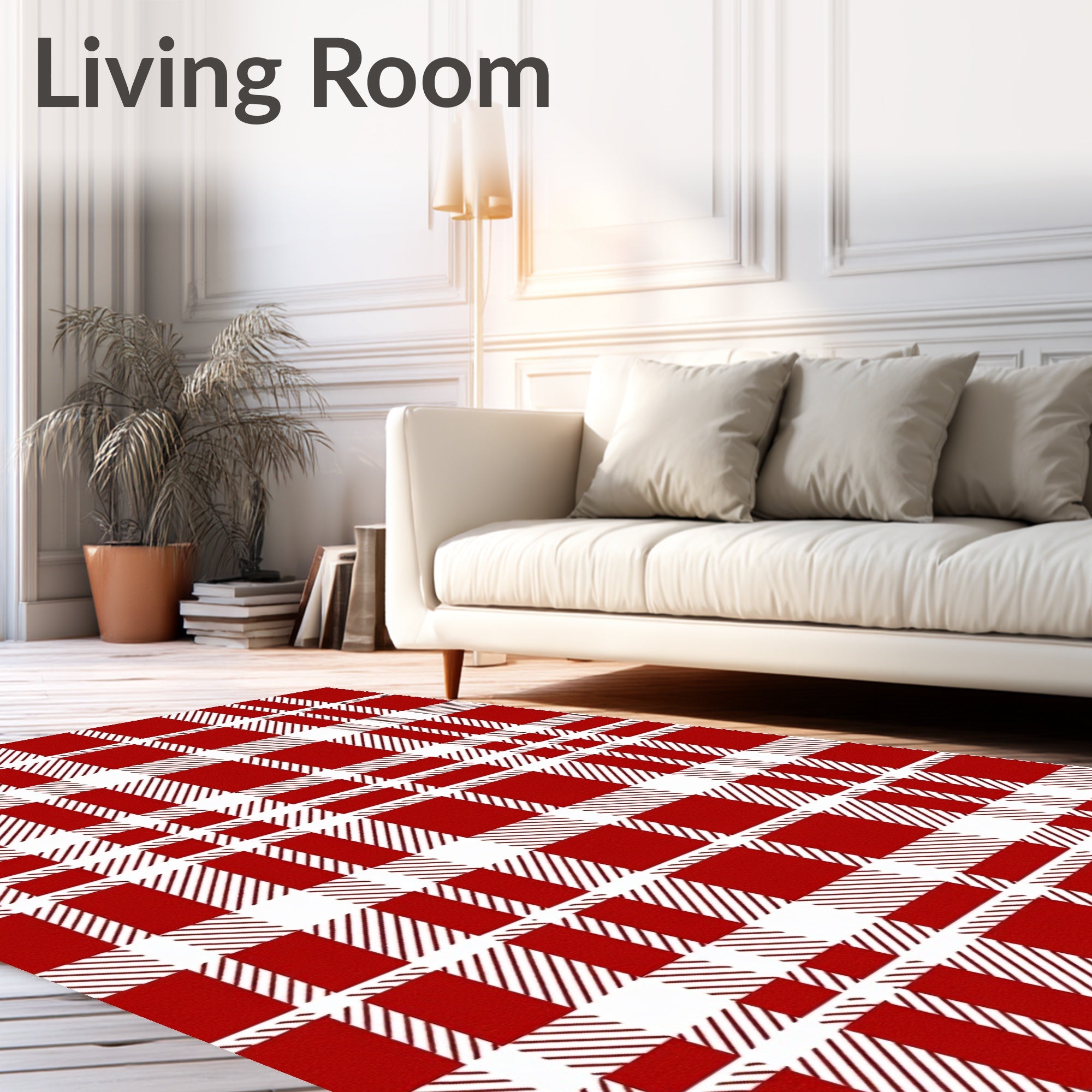 Ultra Soft Area Rug, Non Slip, Stain Resistant, Washable Area Rugs for Living Room, Bedroom, Nordic Winter Tartan Welcome(Red) Overview: