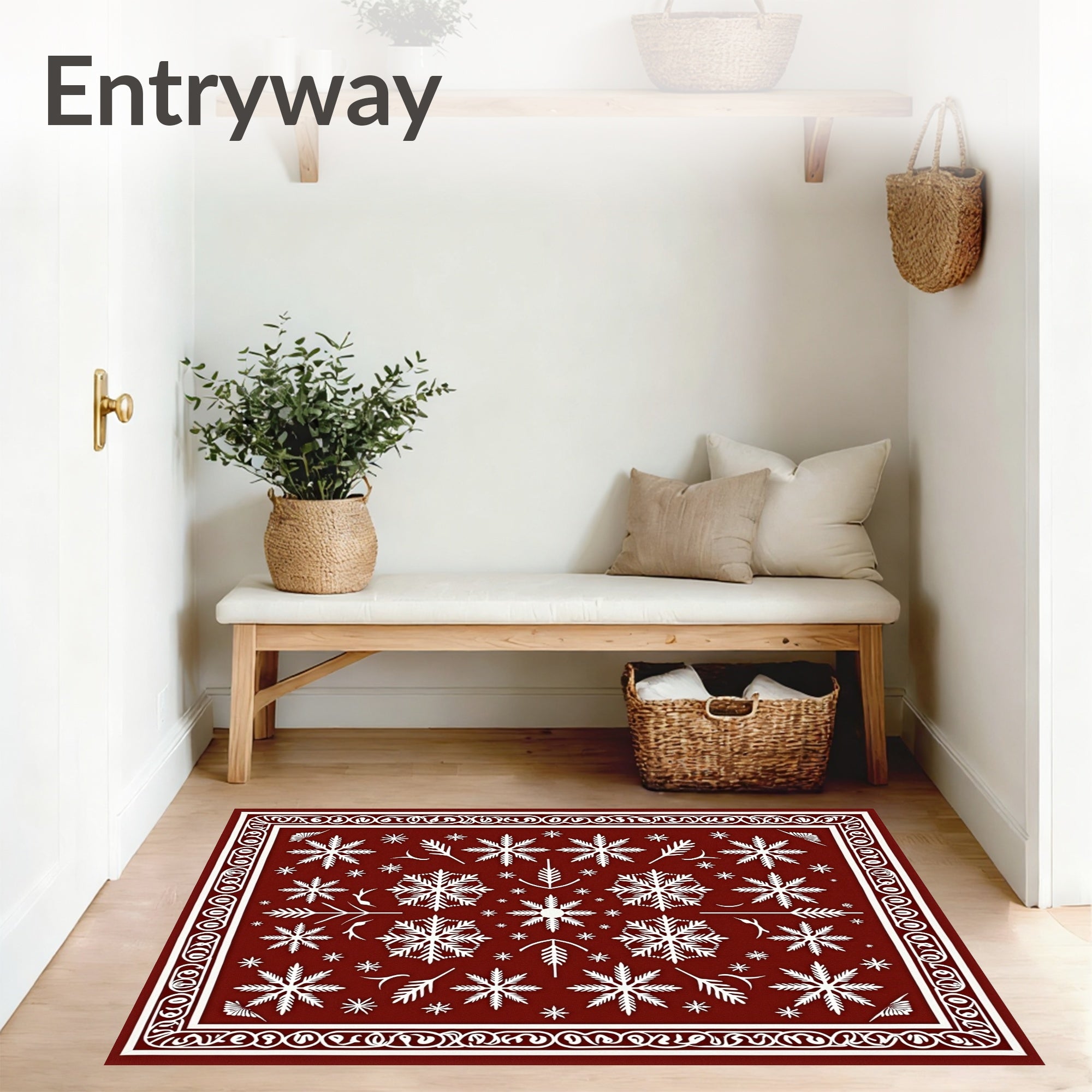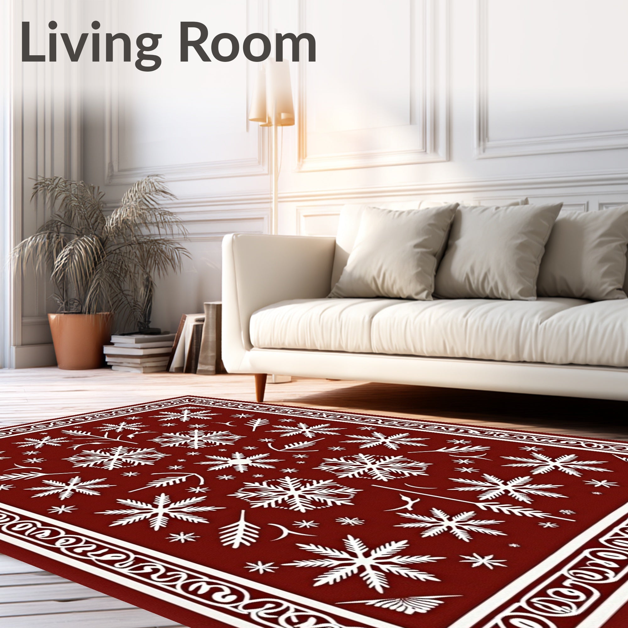 Ultra Soft Area Rug, Non Slip, Stain Resistant, Washable Area Rugs for Living Room, Bedroom, Nordic Yuletide Crystal Seasonal Celebration Floor Covering(Red) Overview: