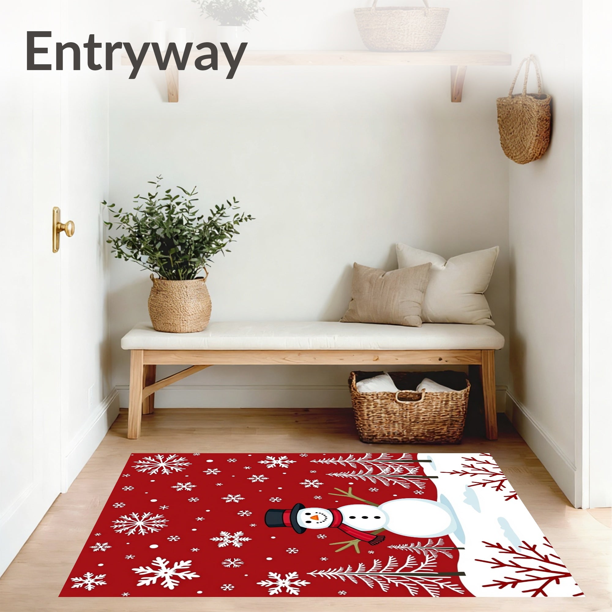 Ultra Soft Area Rug, Non Slip, Stain Resistant, Washable Area Rugs for Living Room, Bedroom, North Pole Festive Seasonal Decorative Accent(Red) Overview: