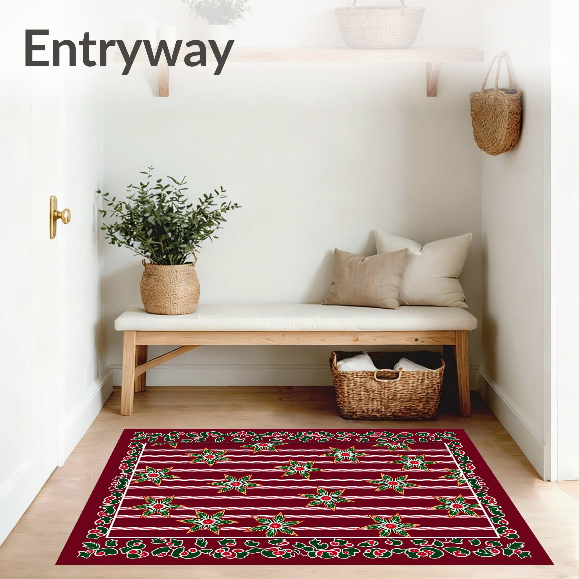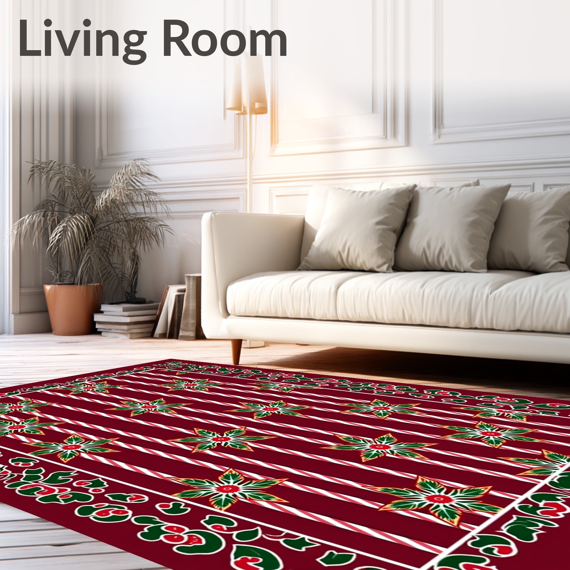 Ultra Soft Area Rug, Non Slip, Stain Resistant, Washable Area Rugs for Living Room, Bedroom, North Pole Magic Enchanted Seasonal Flooring(Red) Overview: