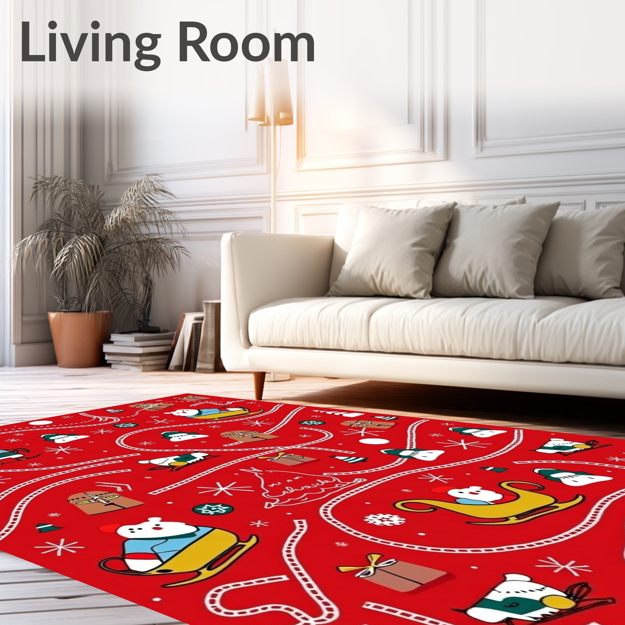 Ultra Soft Area Rug, Non Slip, Stain Resistant, Washable Area Rugs for Living Room, Bedroom, North Pole Magical Journey Whimsical Seasonal(Red) Overview: