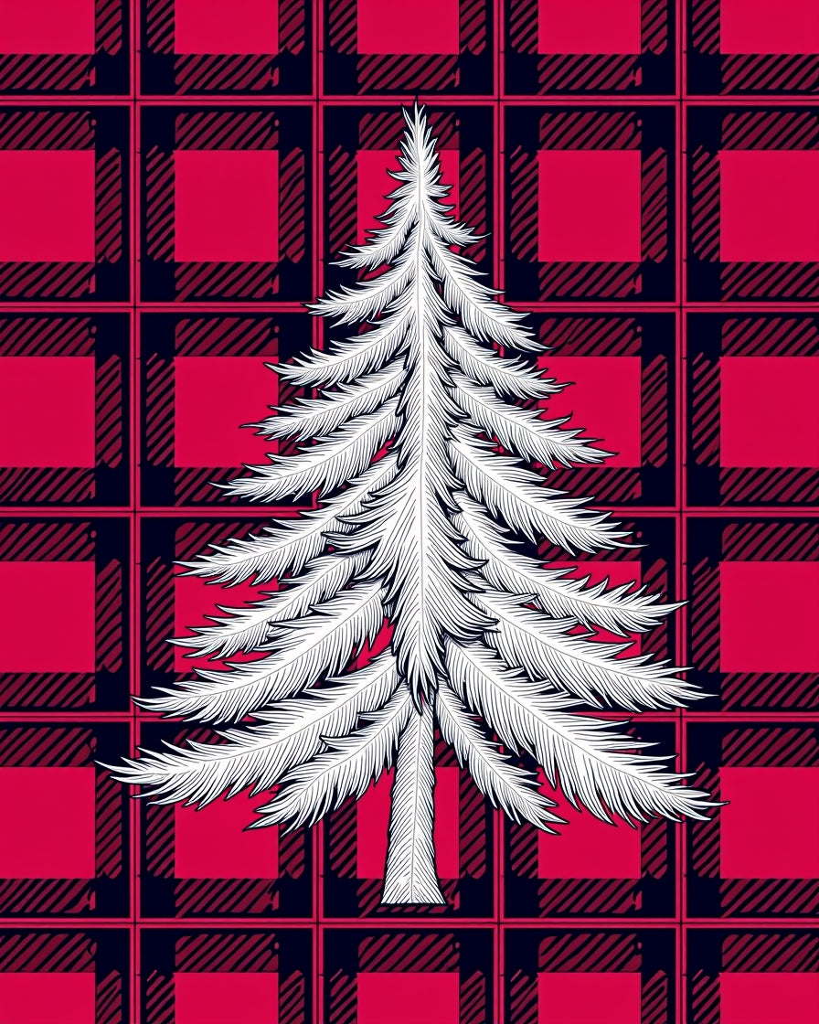 North Woods Spruce Tapestry Against Lumberjack Checkerboard(Red)