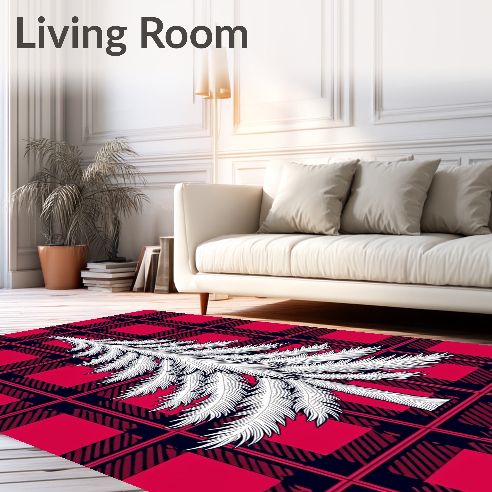 Ultra Soft Area Rug, Non Slip, Stain Resistant, Washable Area Rugs for Living Room, Bedroom, North Woods Spruce Tapestry Against Lumberjack Checkerboard(Red) Overview: