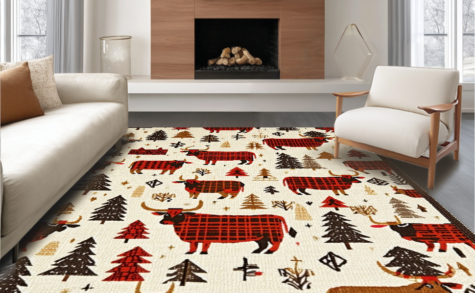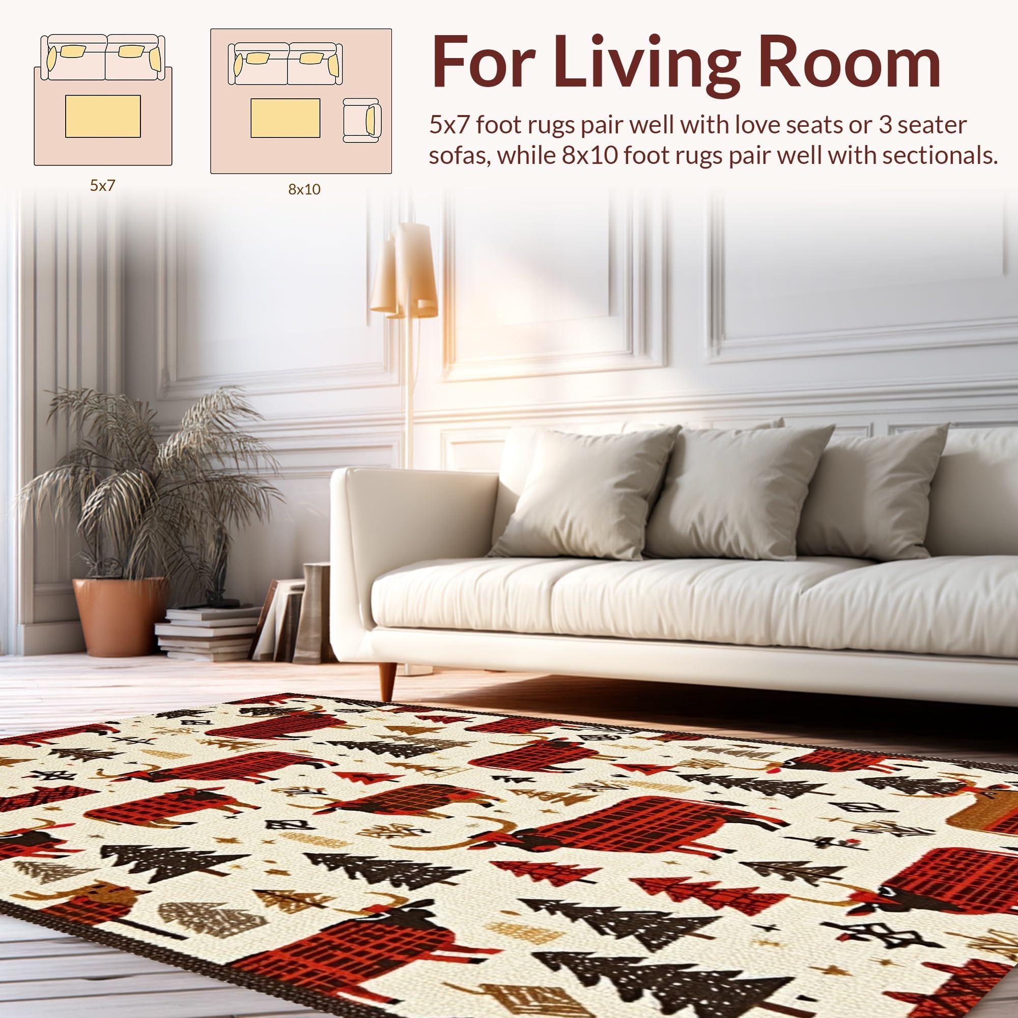 Ultra Soft Area Rug, Non Slip, Stain Resistant, Washable Area Rugs for Living Room, Bedroom, Nostalgic Countryside Festive Theme(Beige) Overview: