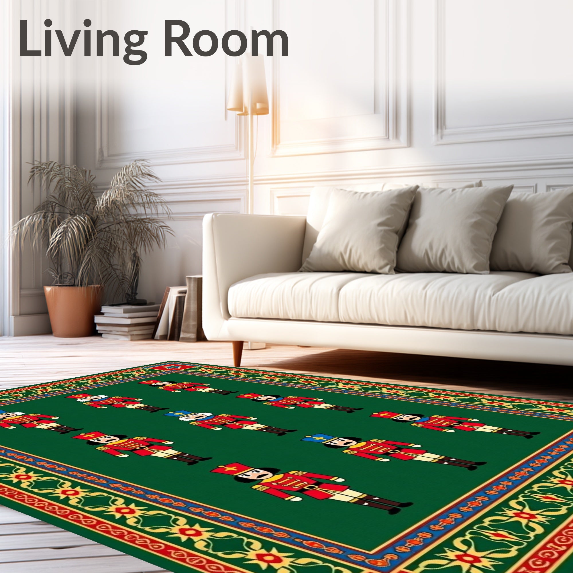 Ultra Soft Area Rug, Non Slip, Stain Resistant, Washable Area Rugs for Living Room, Bedroom, Nostalgic Nutcracker Parade Festive Accent(Green) Overview: