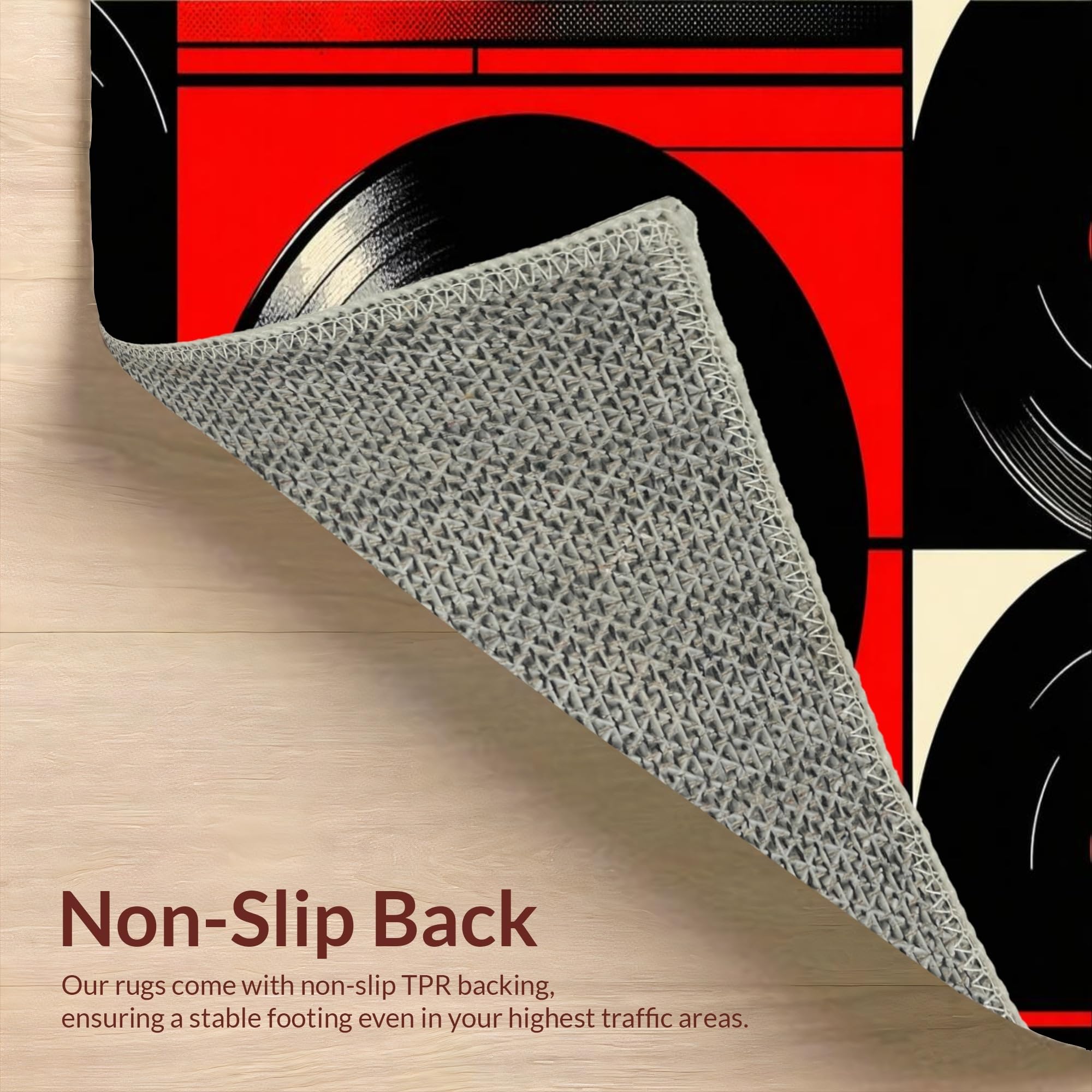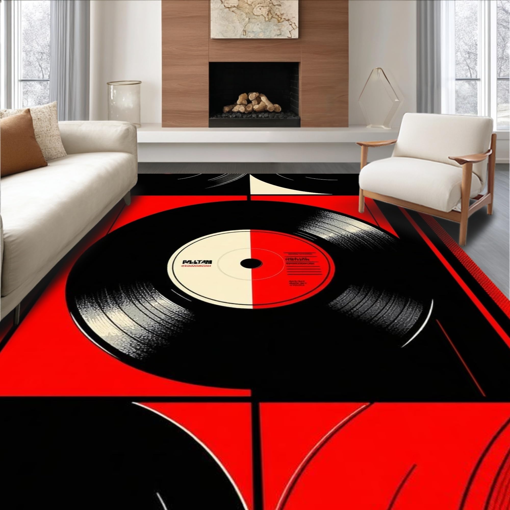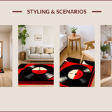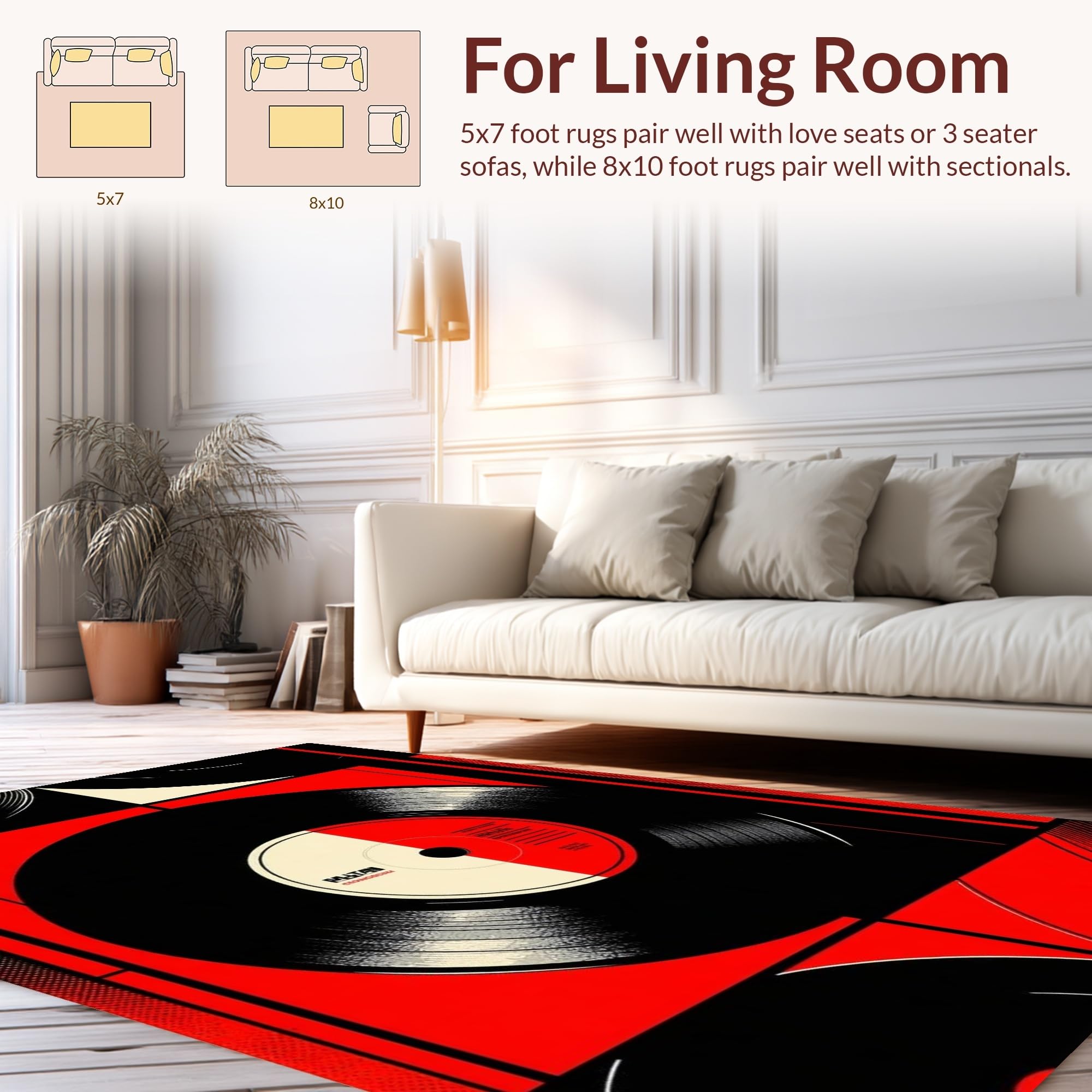 Ultra Soft Area Rug, Non Slip, Stain Resistant, Washable Area Rugs for Living Room, Bedroom, Nostalgic Vintage Vinyl Aesthetic(Black) Overview: