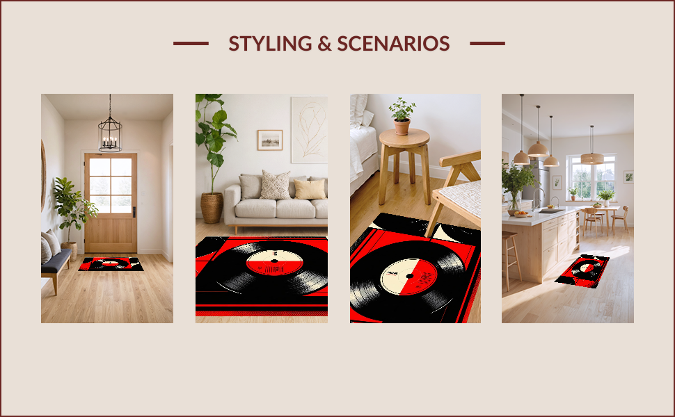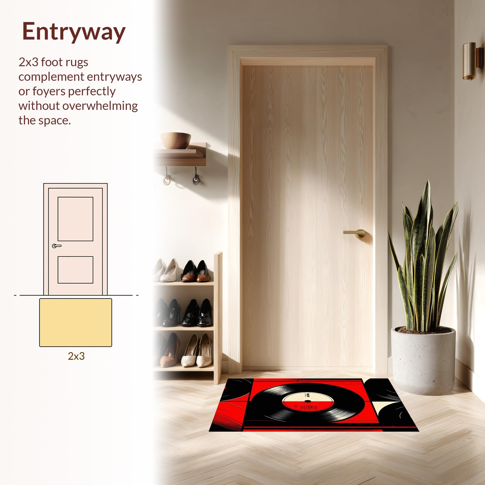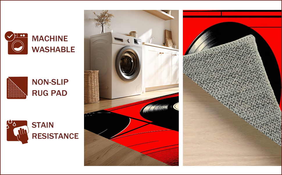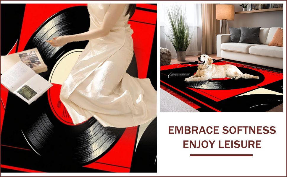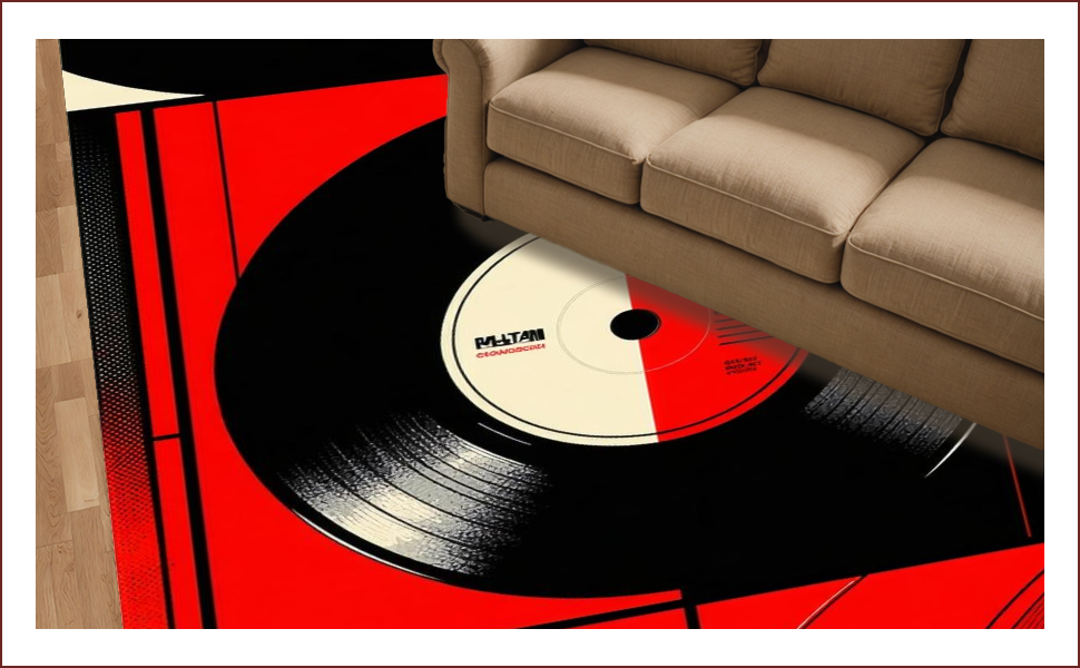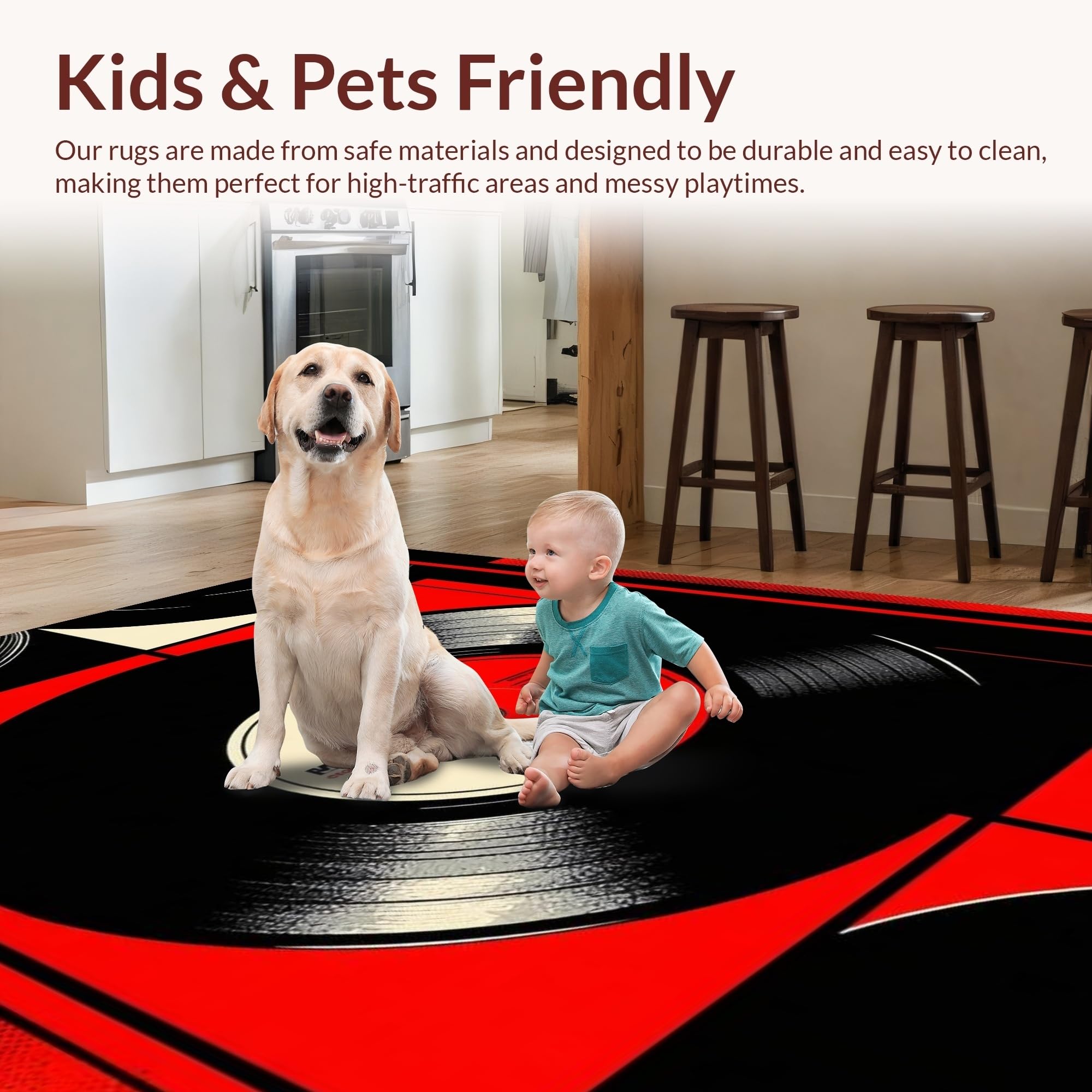 Ultra Soft Area Rug, Non Slip, Stain Resistant, Washable Area Rugs for Living Room, Bedroom, Nostalgic Vintage Vinyl Aesthetic(Black) Overview: