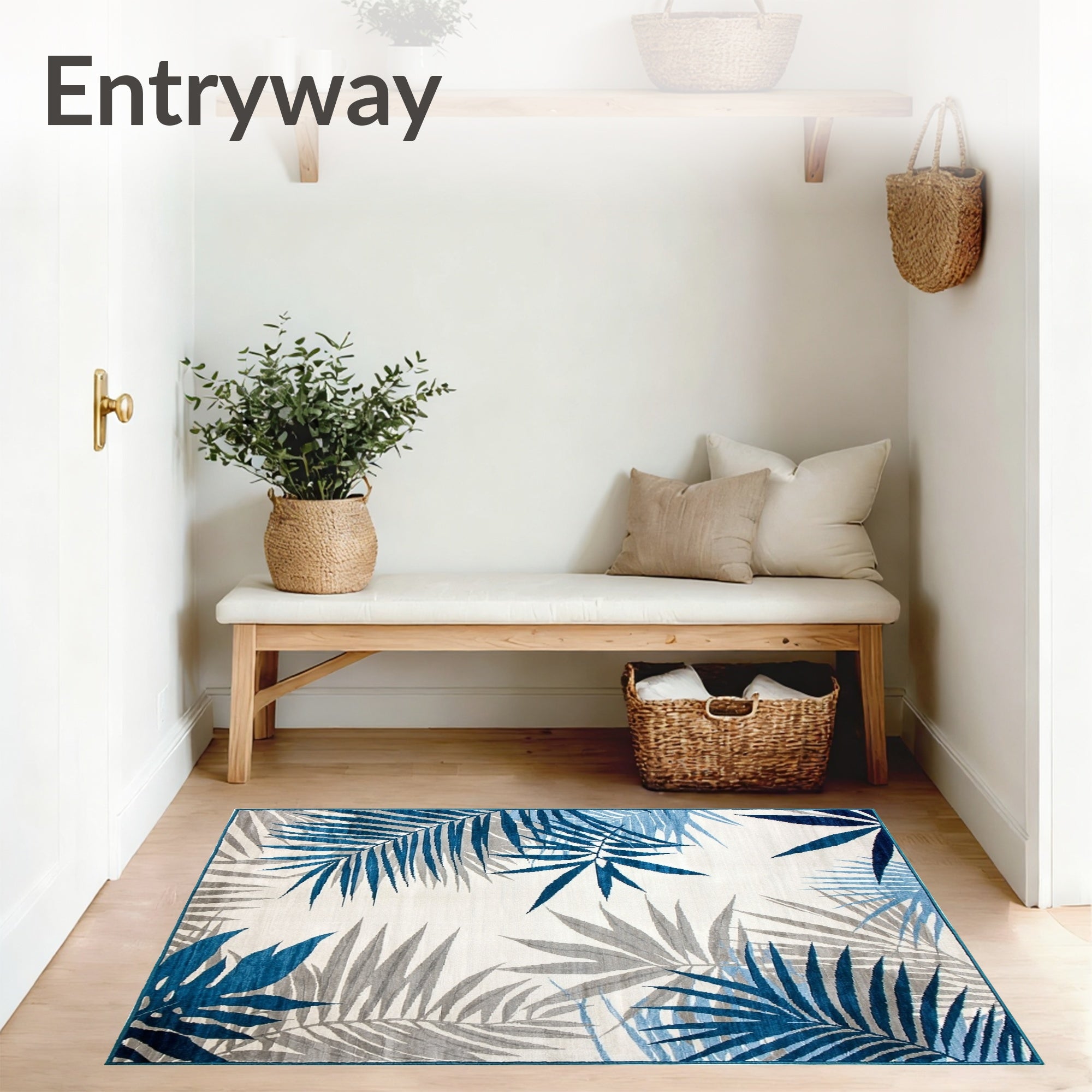 Flatwoven High Traffic Area Rug, Collection Grey Beige Accent, Non Slip, Stain Resistant, Washable Area Rugs for Living Room, Bedroom (Blue) Overview: