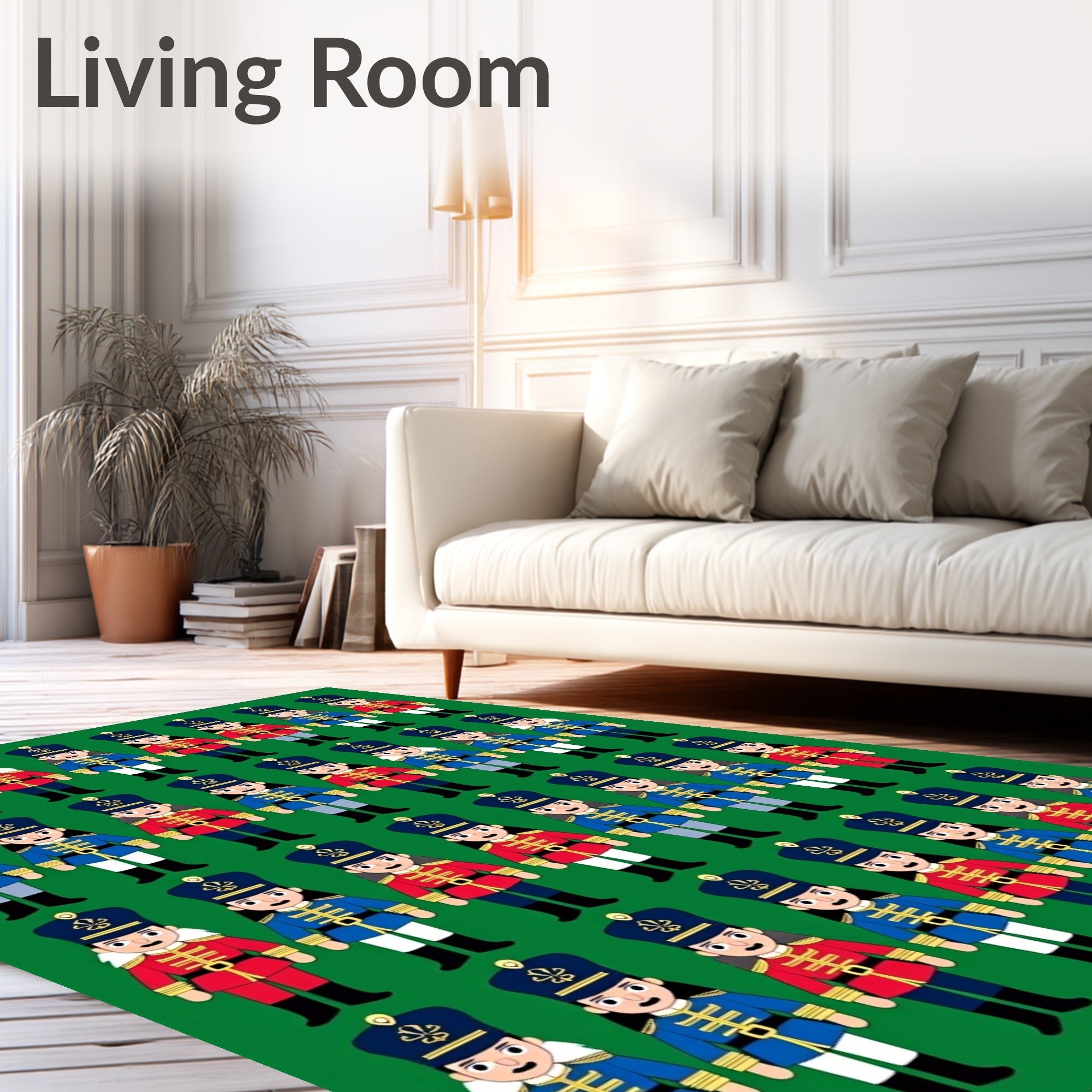 Ultra Soft Area Rug, Non Slip, Stain Resistant, Washable Area Rugs for Living Room, Bedroom, Nutcracker Ballet Toy Soldier Parade Themed Decorative(Green) Overview: