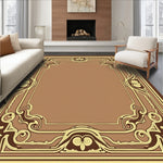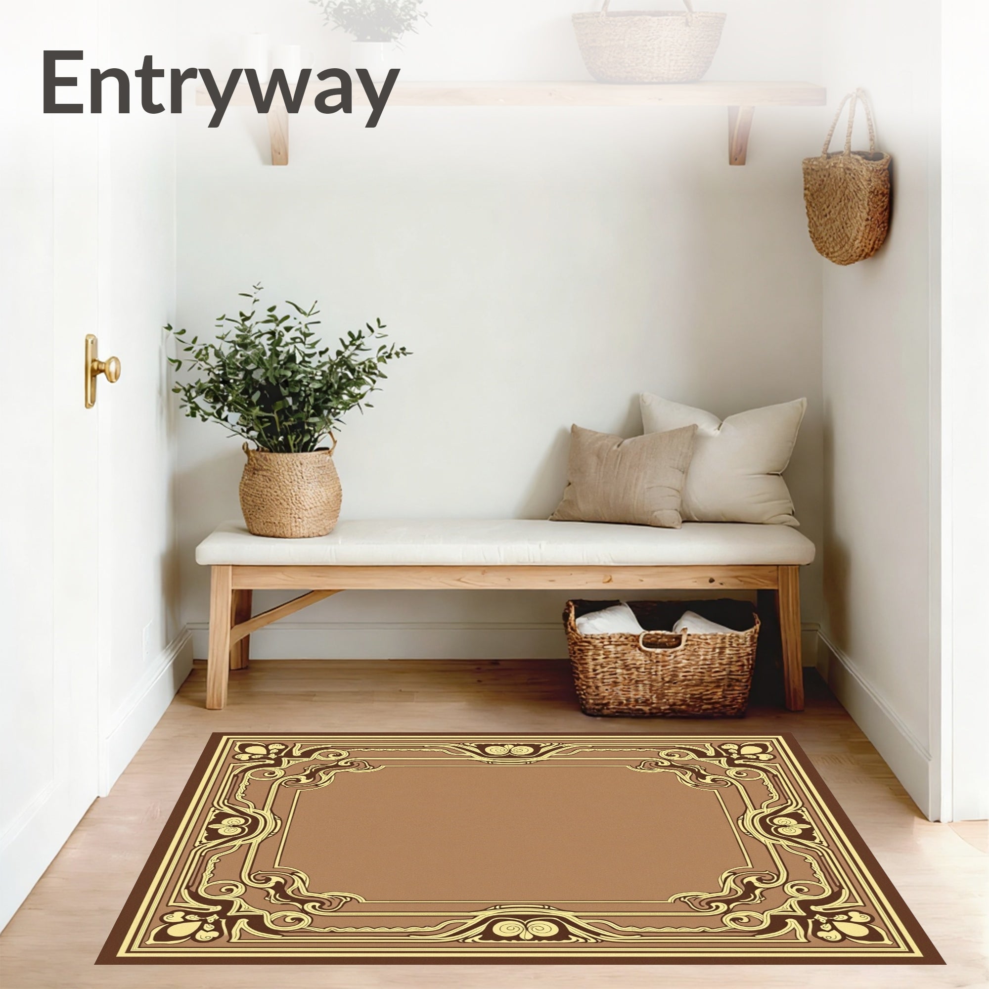 Flatwoven High Traffic Area Rug, Oasis Damask Swirl Labyrinth Embellished Artwork, Non Slip, Stain Resistant, Washable Area Rugs for Living Room, Bedroom (Brown) Overview: