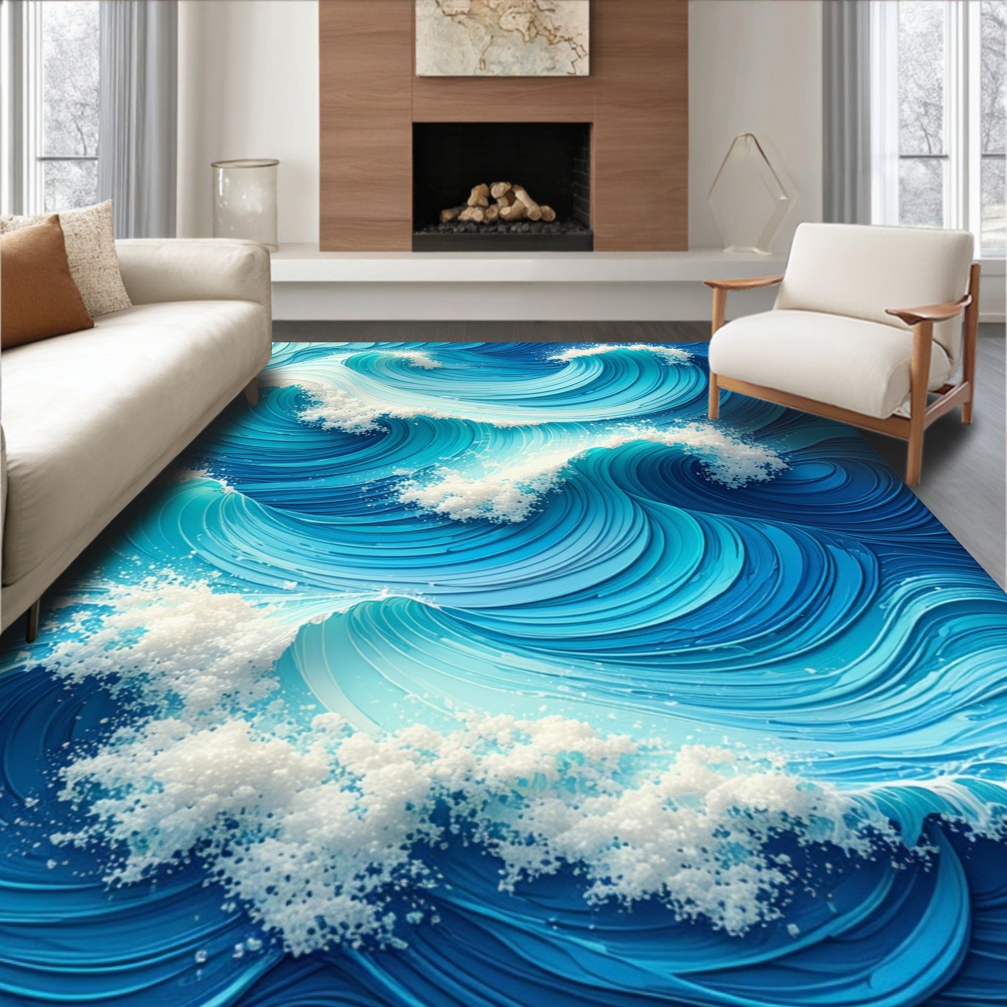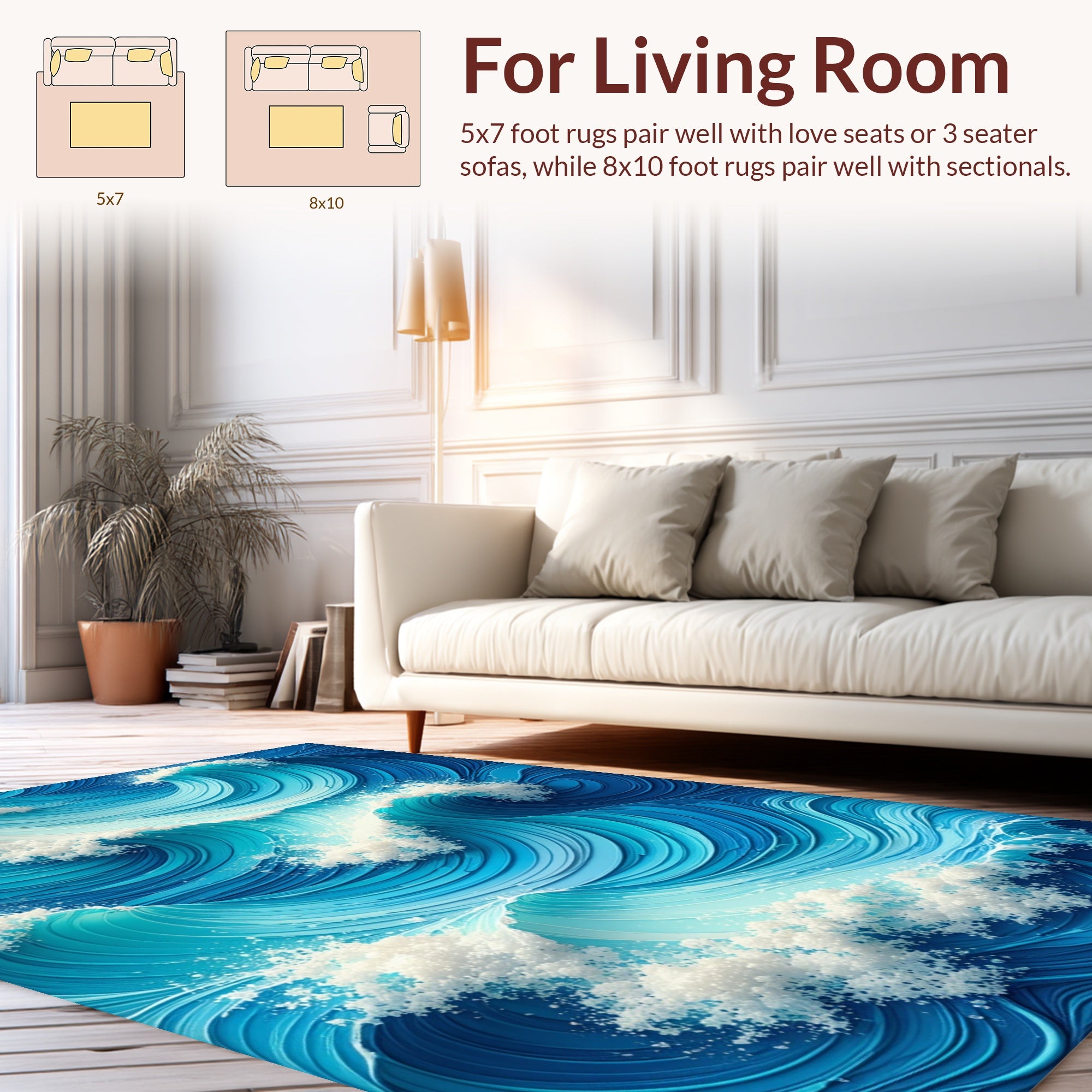 Flatwoven High Traffic Area Rug, Ocean Waves Non Slip, Non Slip, Stain Resistant, Washable Area Rugs for Living Room, Bedroom (Blue) Overview: