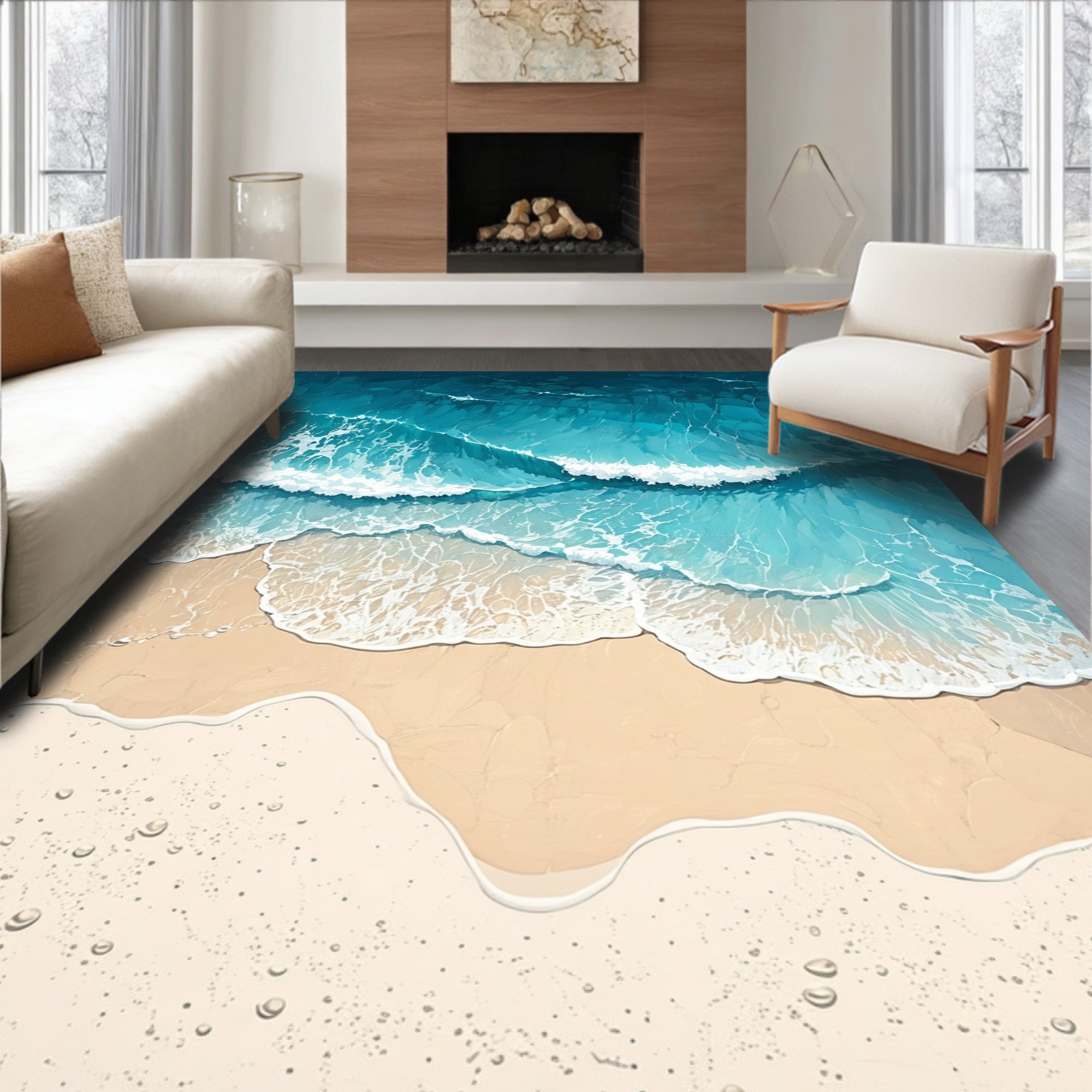 Ocean Wave Polyester Dorm Room Floor(Blue)