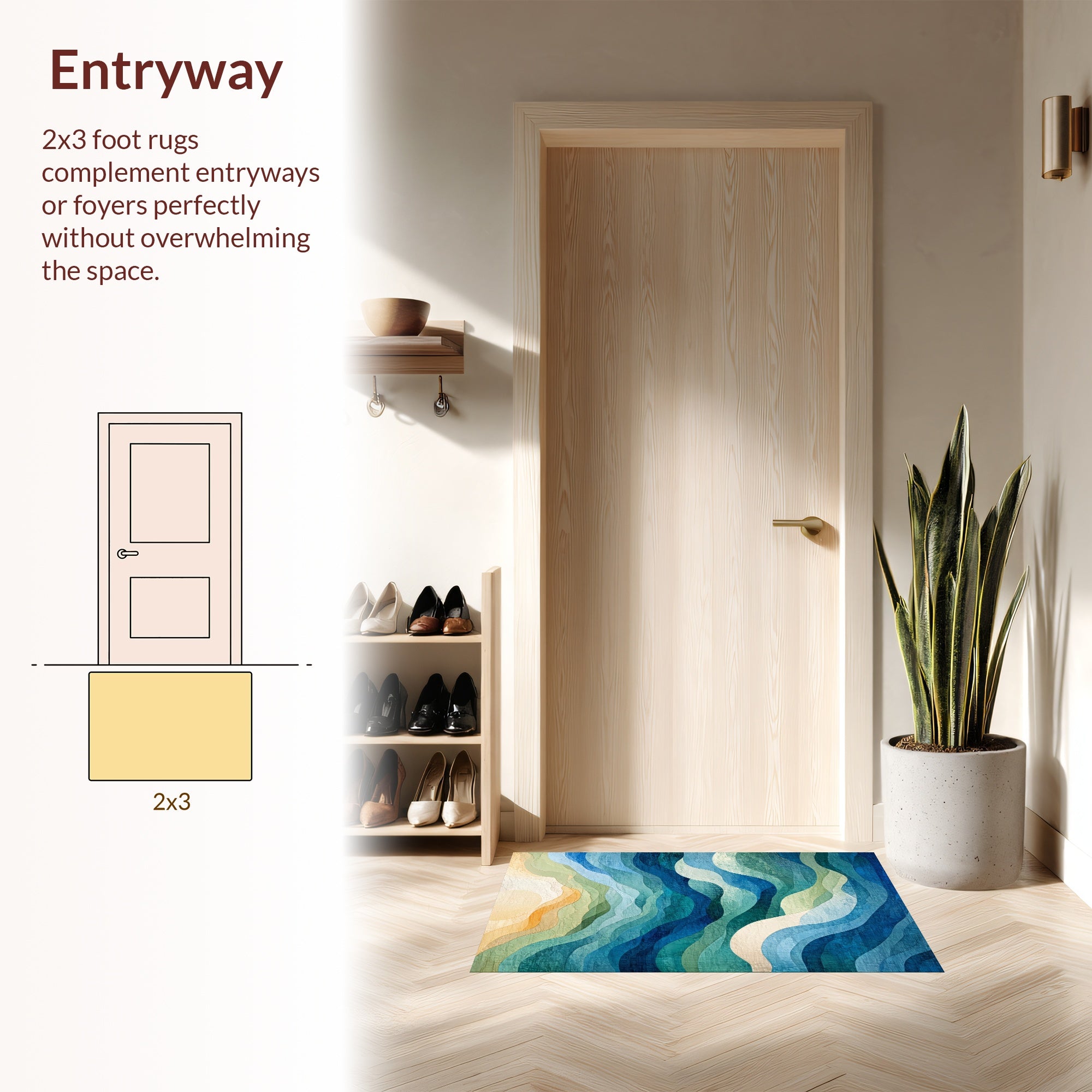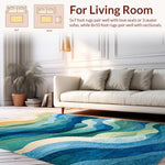 Flatwoven High Traffic Area Rug, Ocean Waves Area Abstract Coastal Design, Non Slip, Stain Resistant, Washable Area Rugs for Living Room, Bedroom (Blue) Overview:
