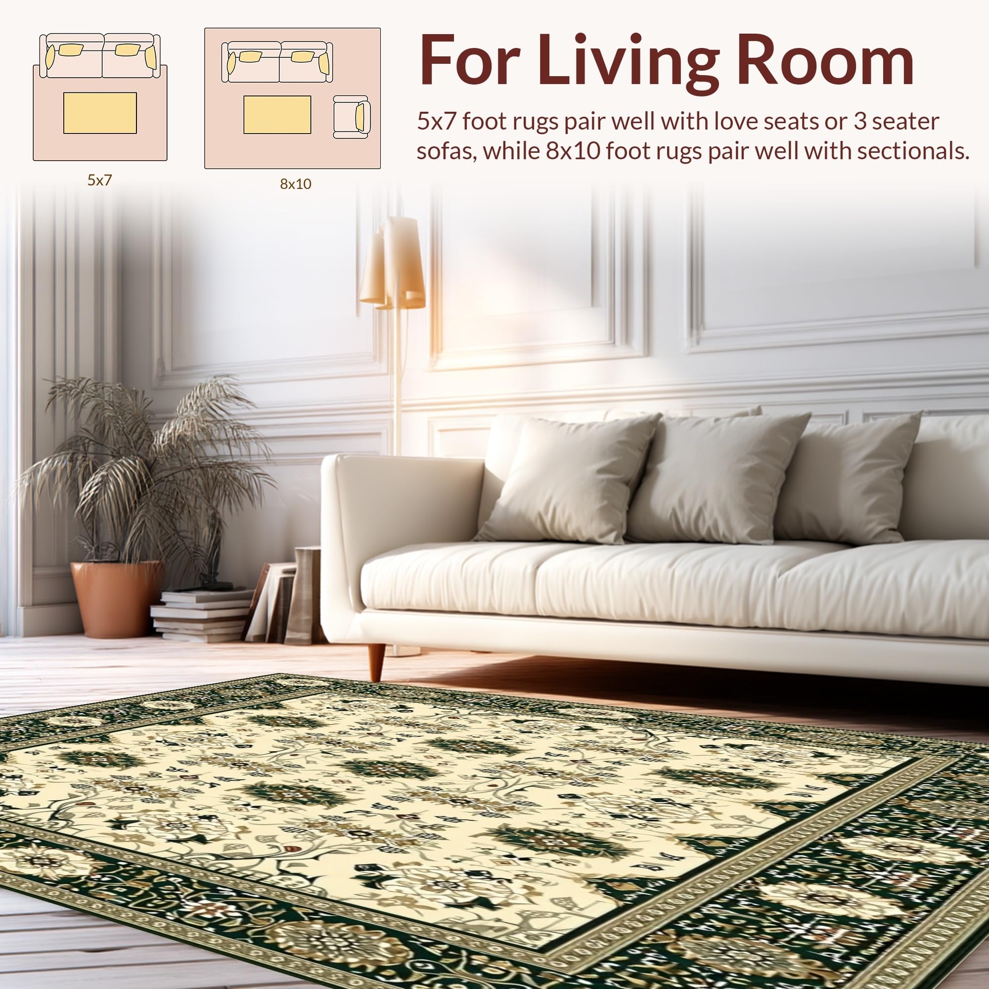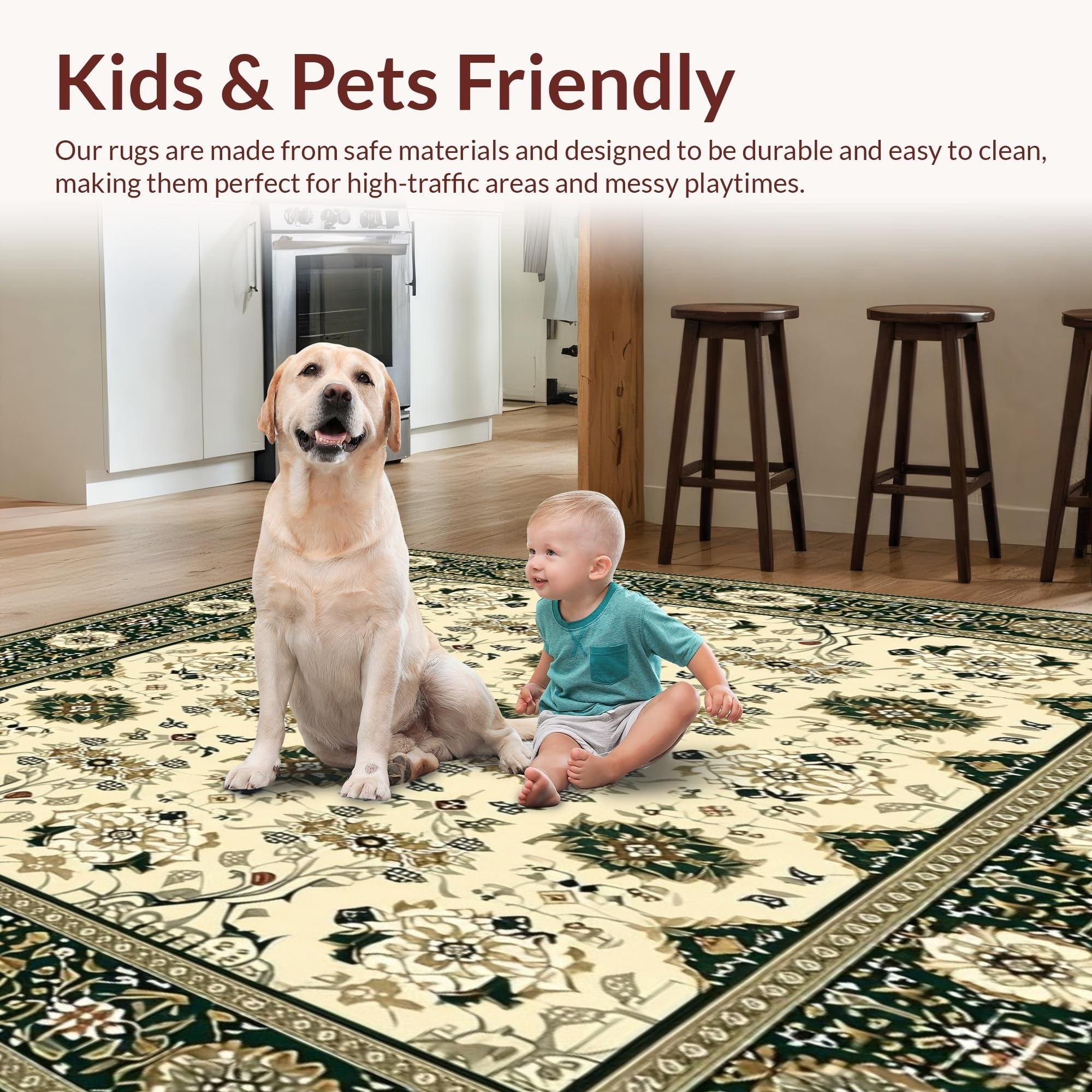 Ultra Soft Area Rug, Non Slip, Stain Resistant, Washable Area Rugs for Living Room, Bedroom, Olive Toned with Geometric and Floral Motifs(Beige) Overview: