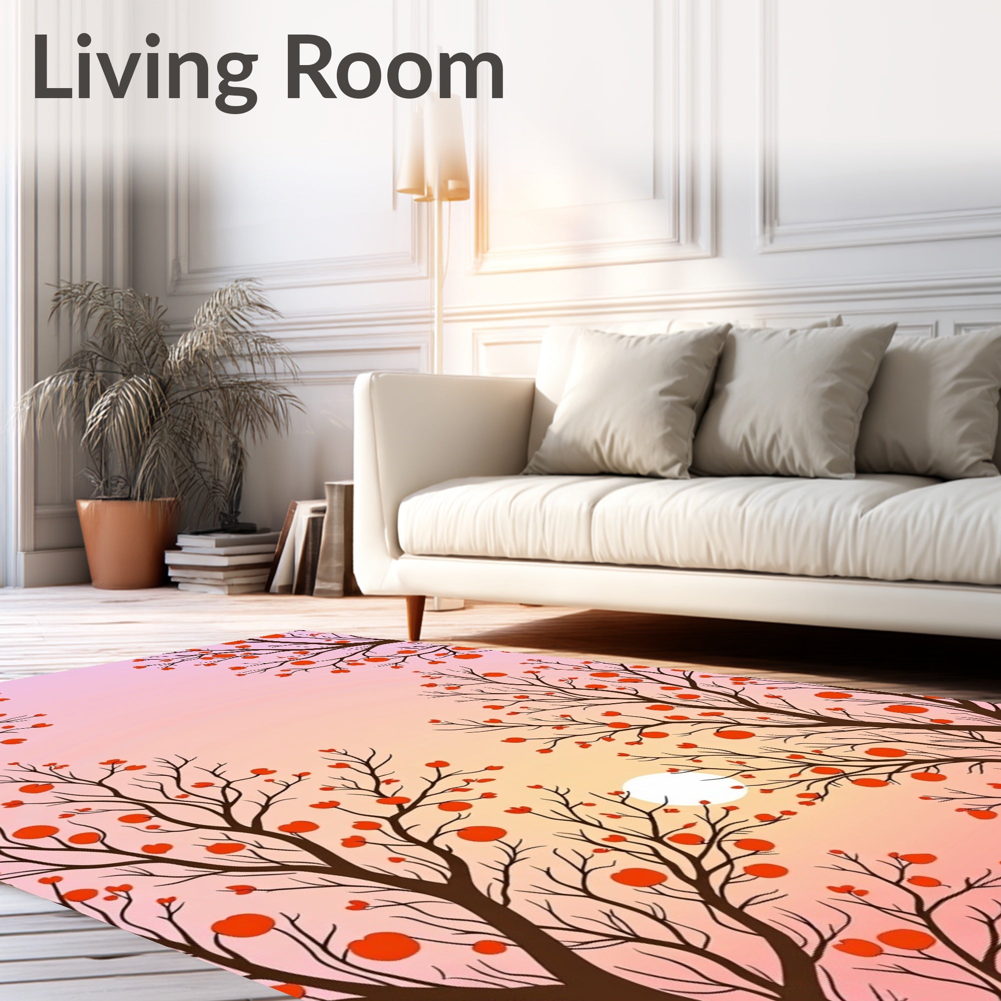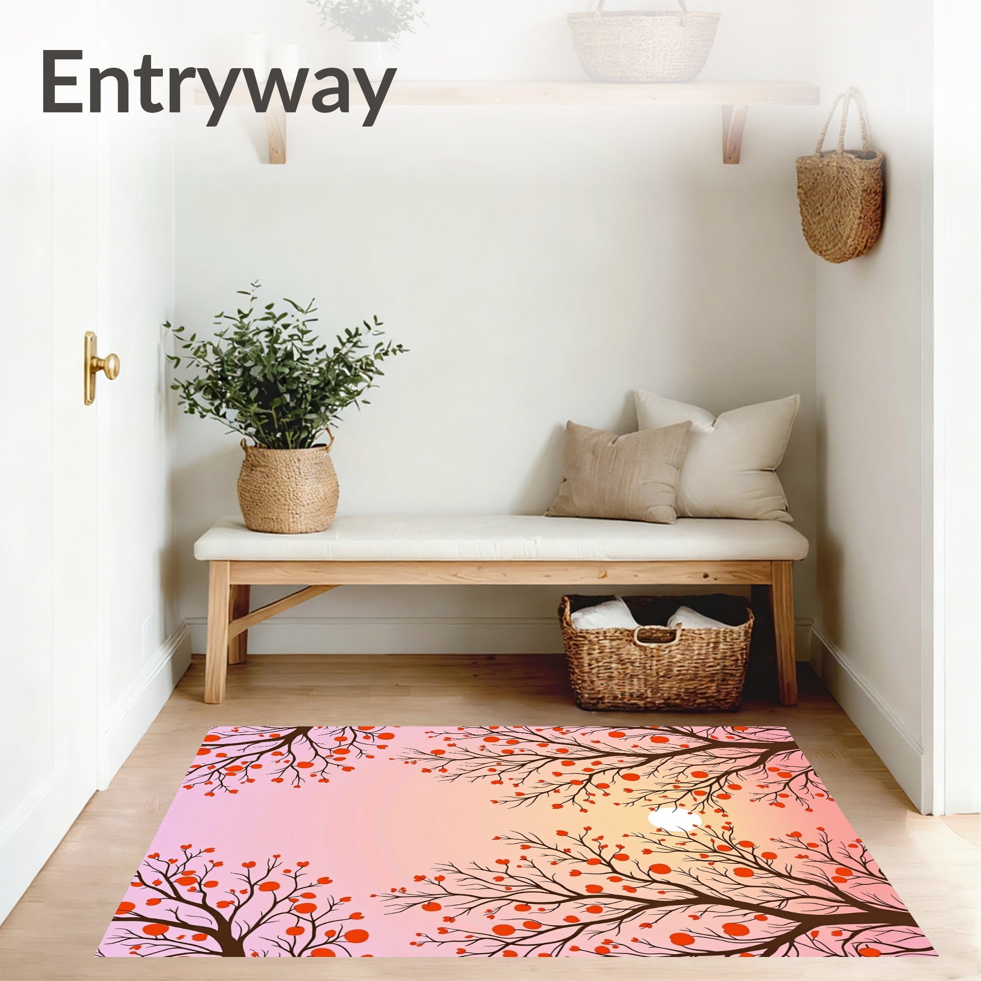 Flatwoven High Traffic Area Rug, Orchard Sunrise Fruit Tree Branch Welcome Entryway, Non Slip, Stain Resistant, Washable Area Rugs for Living Room, Bedroom (Red) Overview: