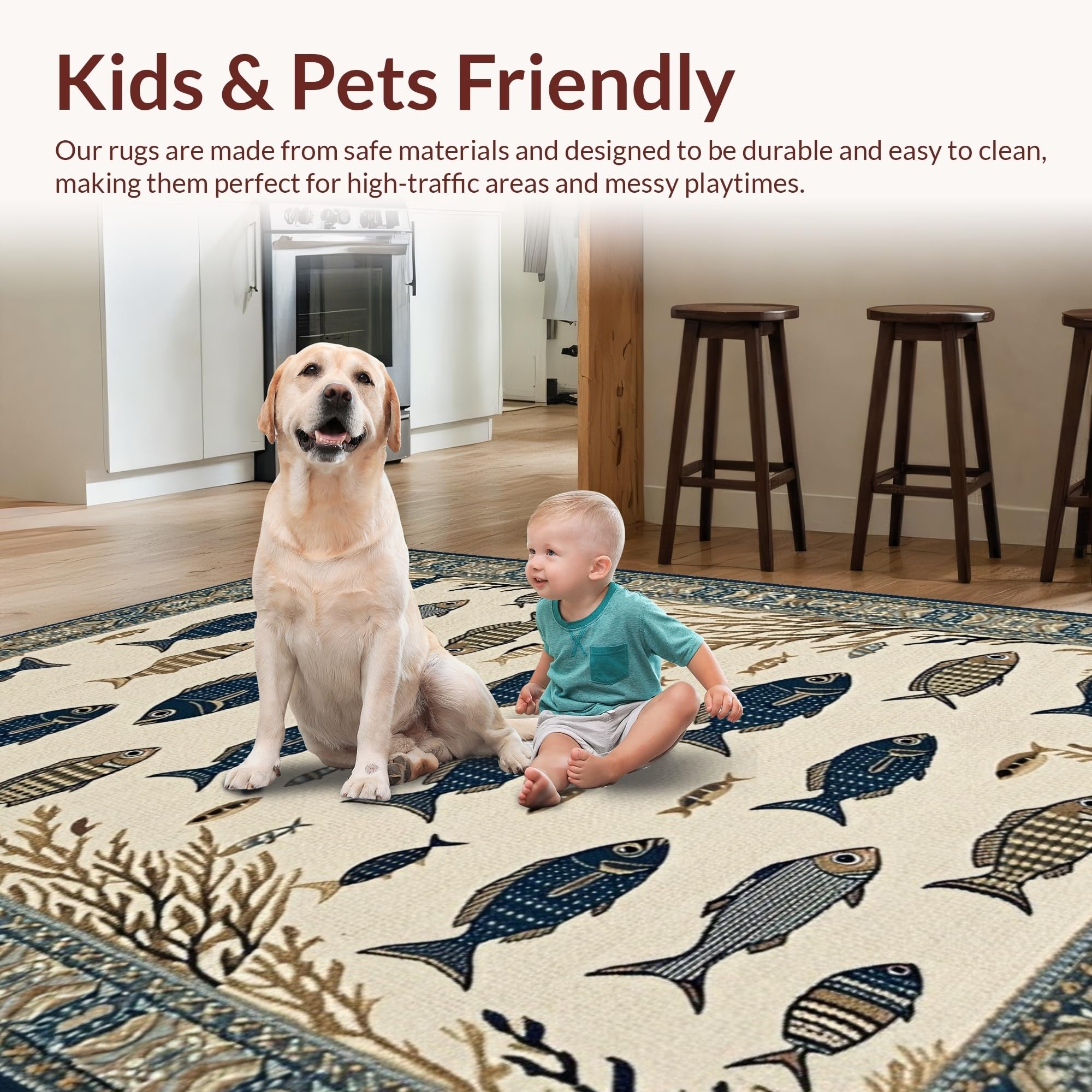 Ultra Soft Area Rug, Non Slip, Stain Resistant, Washable Area Rugs for Living Room, Bedroom, Organic Coastal Vibe Doormat(Beige) Overview: