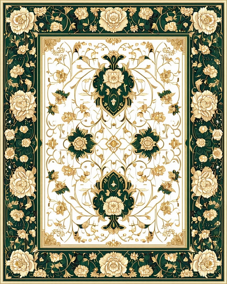 Flatwoven High Traffic Area Rug, Oriental Botanical, Non Slip, Stain Resistant, Washable Area Rugs for Living Room, Bedroom (White) Overview: