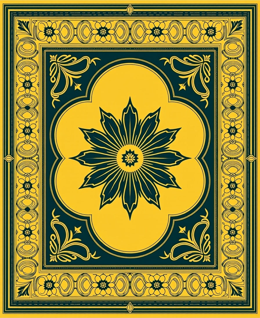 Oriental Palmette Panel with Golden Accented Floral Motifs(Yellow)