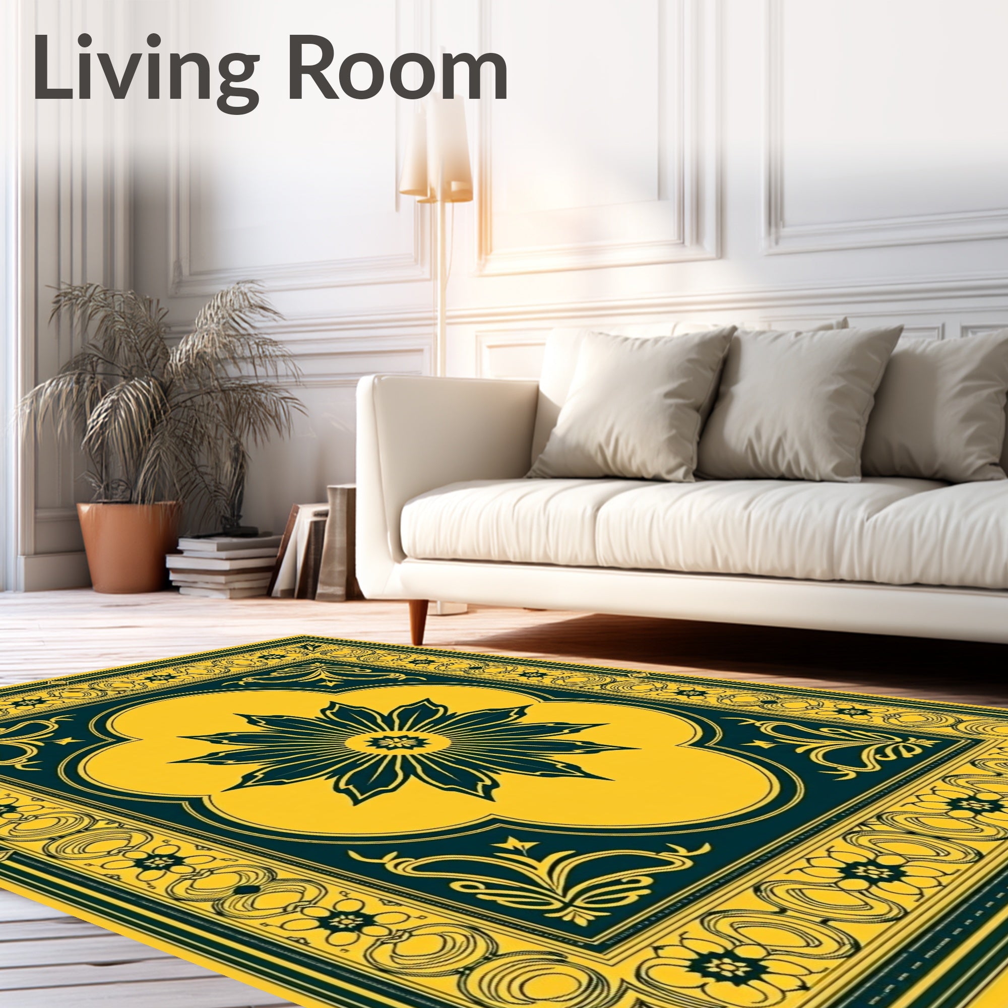 Ultra Soft Area Rug, Non Slip, Stain Resistant, Washable Area Rugs for Living Room, Bedroom, Oriental Palmette Panel with Golden Accented Floral Motifs(Yellow) Overview: