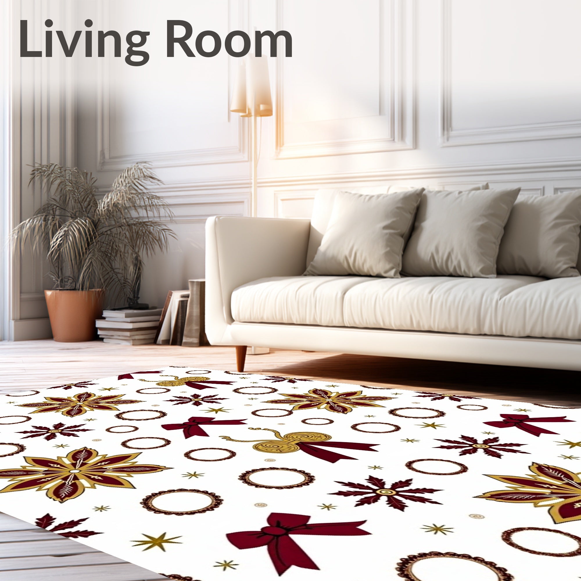 Flatwoven High Traffic Area Rug, Ornament Medallion with Ribbon Bow Flourishes, Non Slip, Stain Resistant, Washable Area Rugs for Living Room, Bedroom (Gold) Overview: