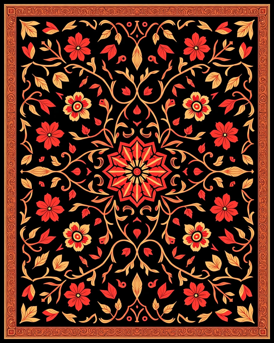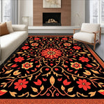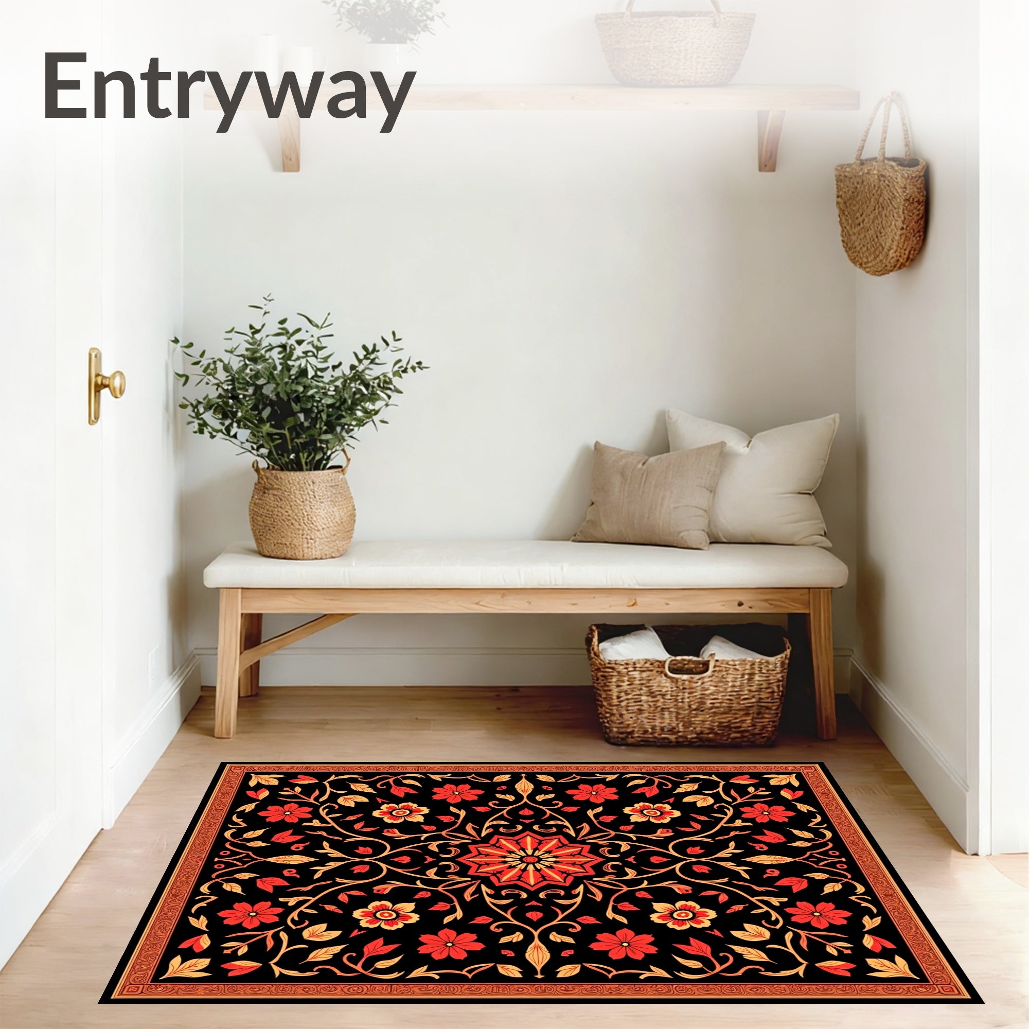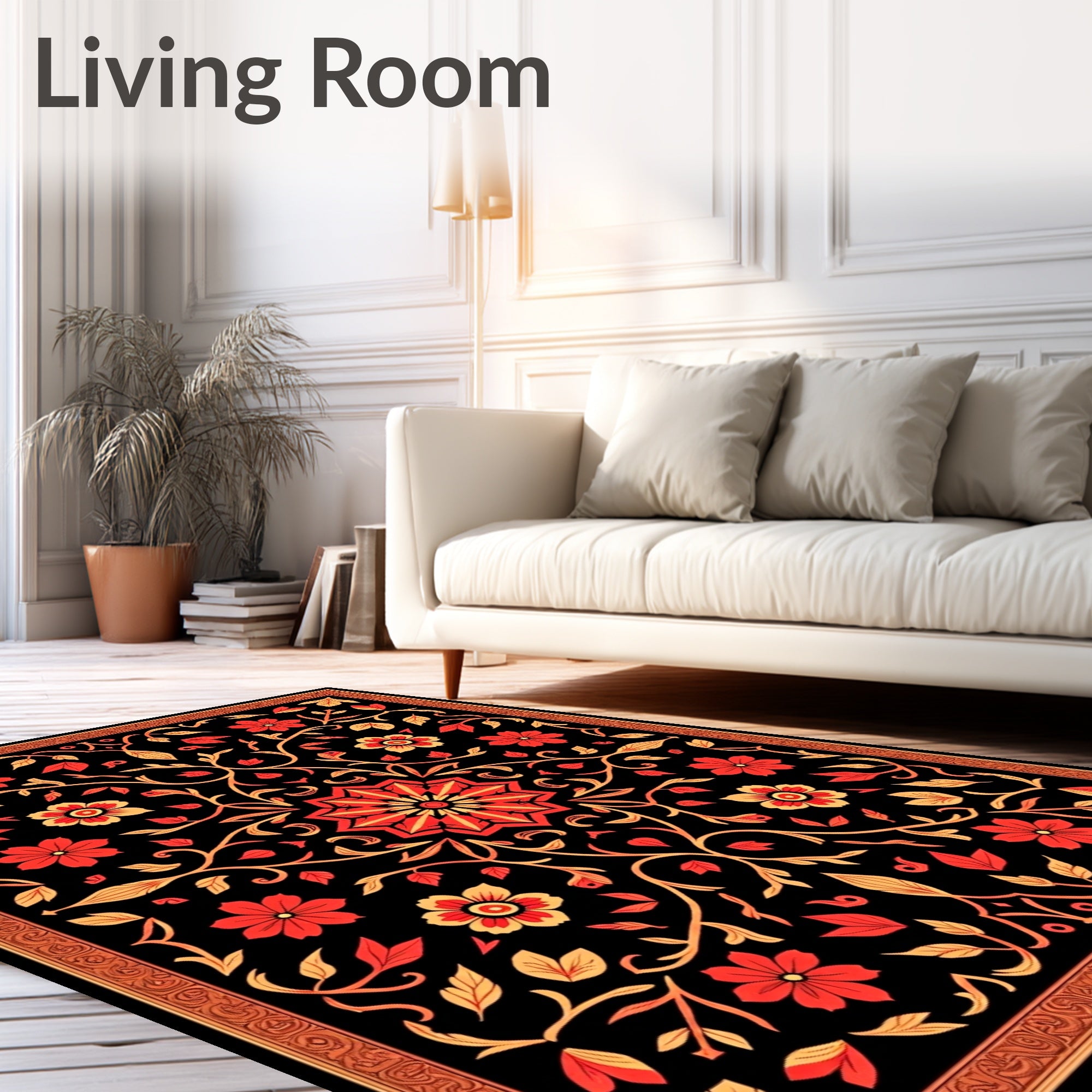 Ultra Soft Area Rug, Non Slip, Stain Resistant, Washable Area Rugs for Living Room, Bedroom, Ornamental Vine Lattice Featuring Seasonal Flora Embellishments(Black) Overview: