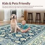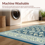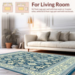 Ultra Soft Area Rug, Non Slip, Stain Resistant, Washable Area Rugs for Living Room, Bedroom, Ornate Damask and Artful Boho Flourishes(Blue) Overview: