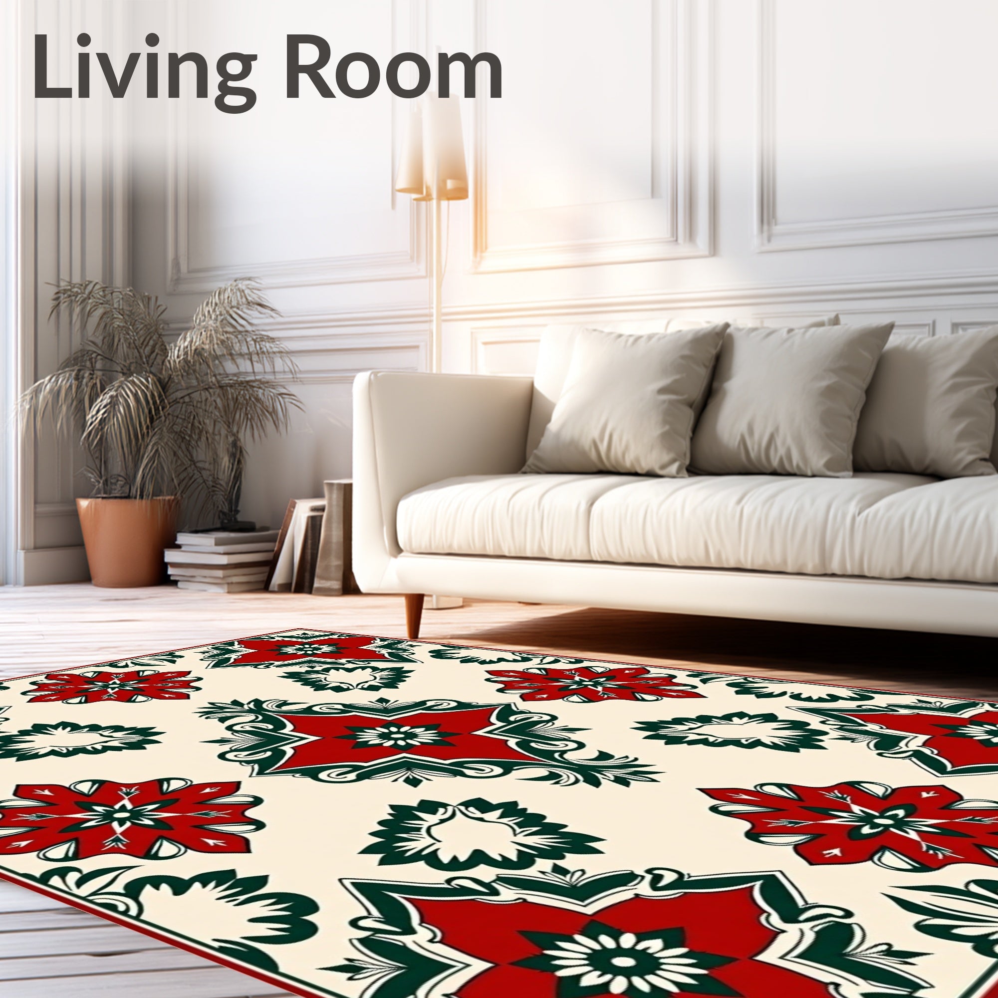 Ultra Soft Area Rug, Non Slip, Stain Resistant, Washable Area Rugs for Living Room, Bedroom, Ornate Holiday Quatrefoil with Seasonal Decorative Details(Red) Overview:
