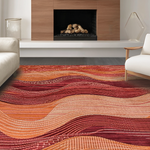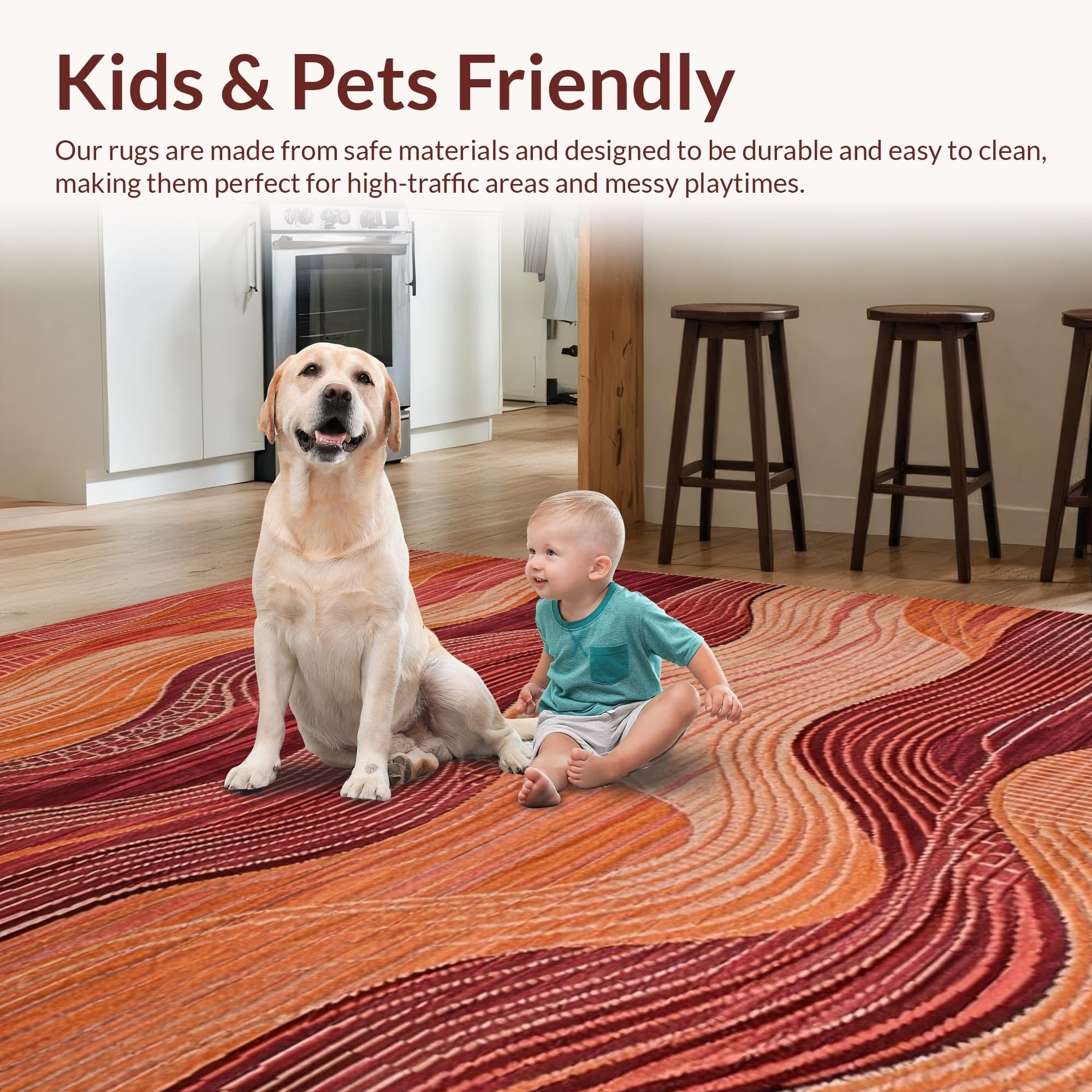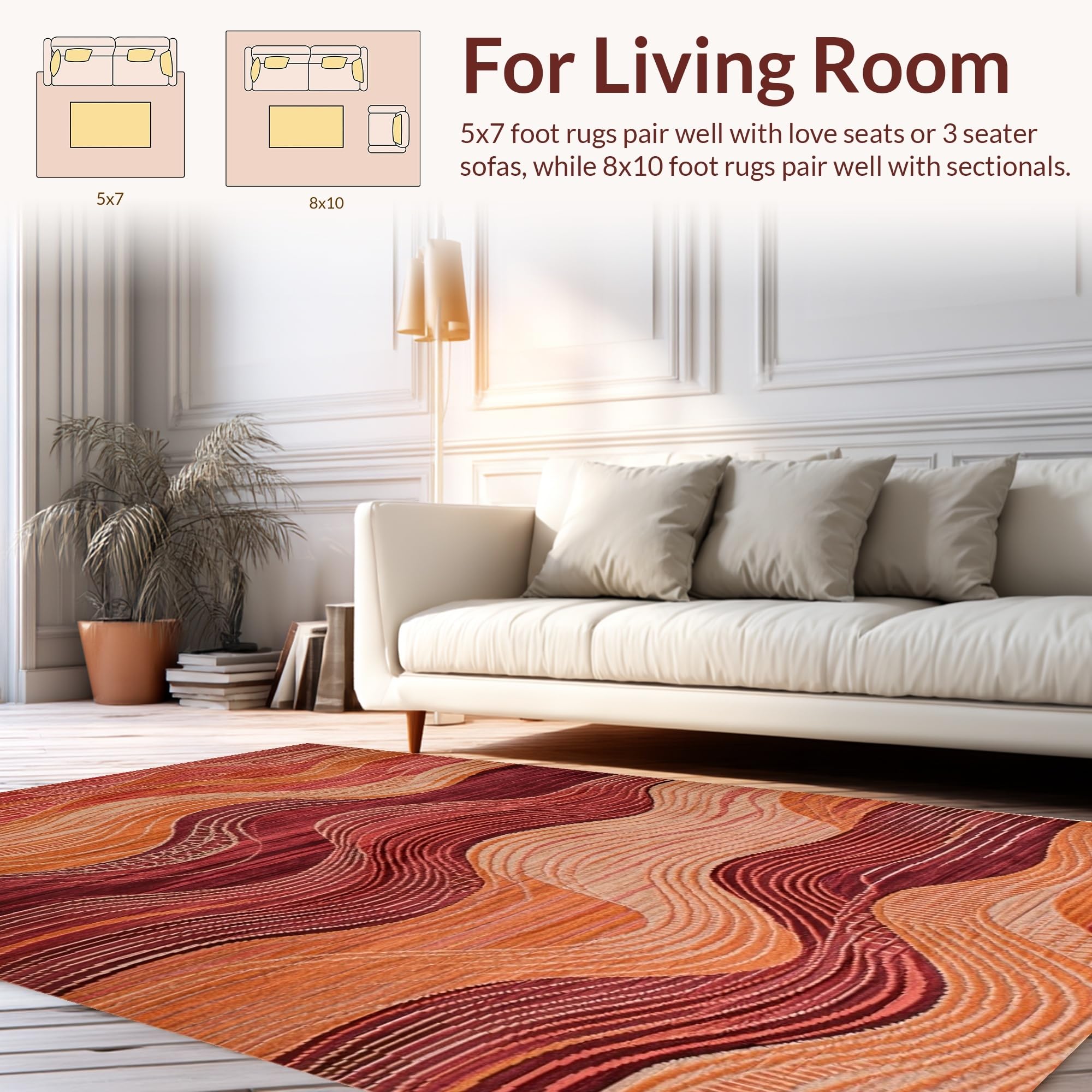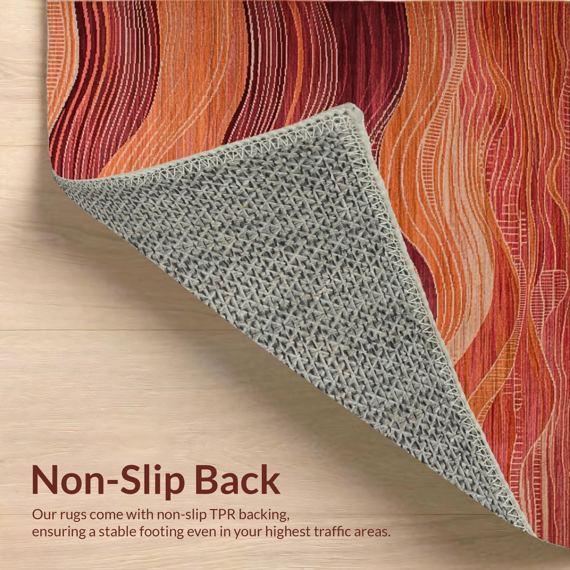 Ultra Soft Area Rug, Non Slip, Stain Resistant, Washable Area Rugs for Living Room, Bedroom, Ornate Turquoise Striped Aesthetic(Red) Overview: