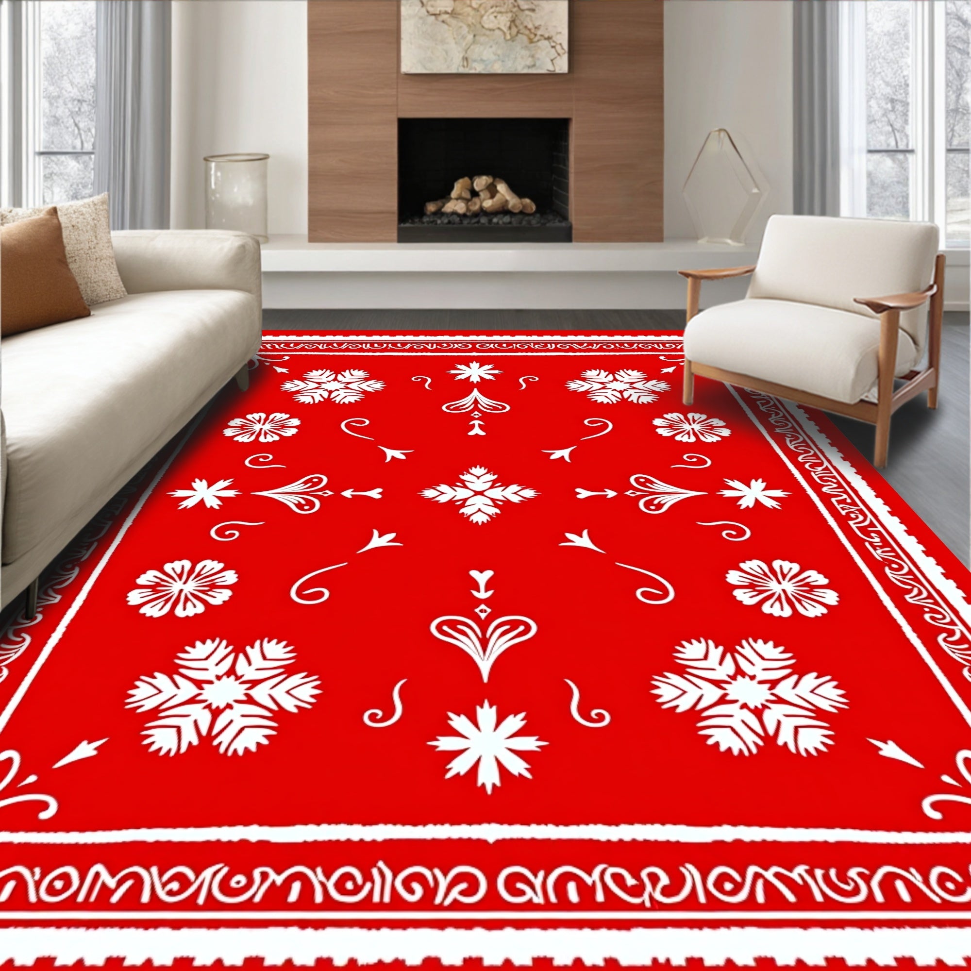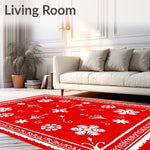 Ultra Soft Area Rug, Non Slip, Stain Resistant, Washable Area Rugs for Living Room, Bedroom, Ornate Winter Starburst Featuring Gold Highlights and Frosted Motifs(Red) Overview: