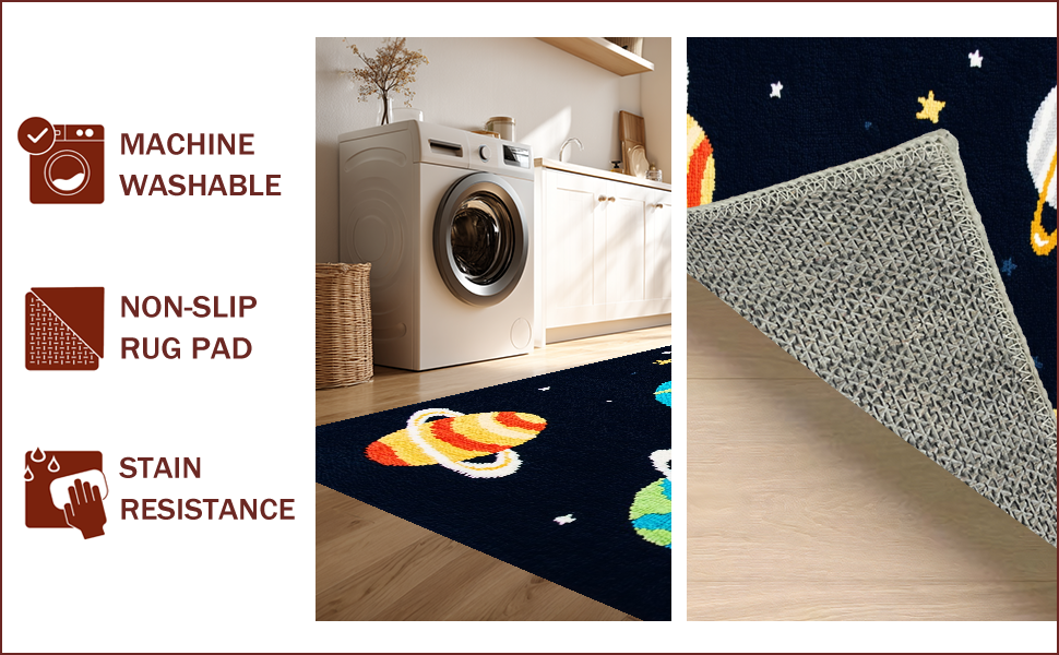 Ultra Soft Area Rug, Non Slip, Stain Resistant, Washable Area Rugs for Living Room, Bedroom, Outer Space Kids Rug(Black) Overview: