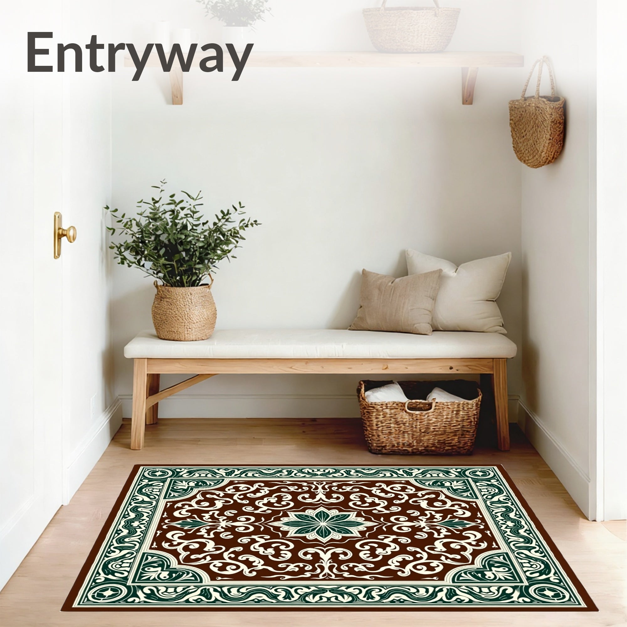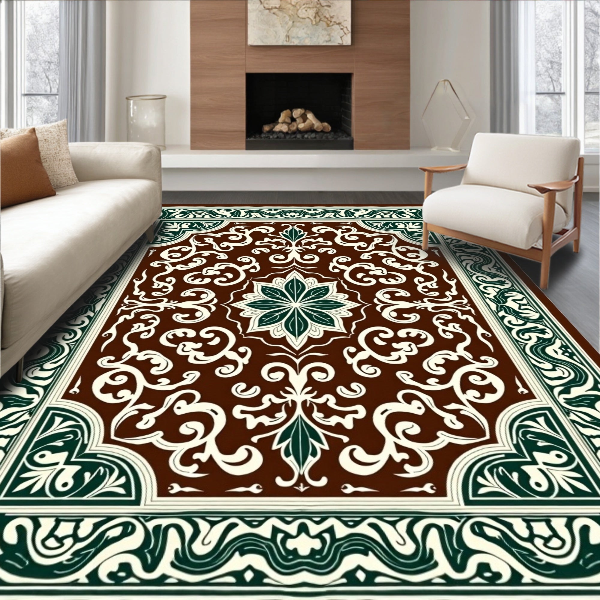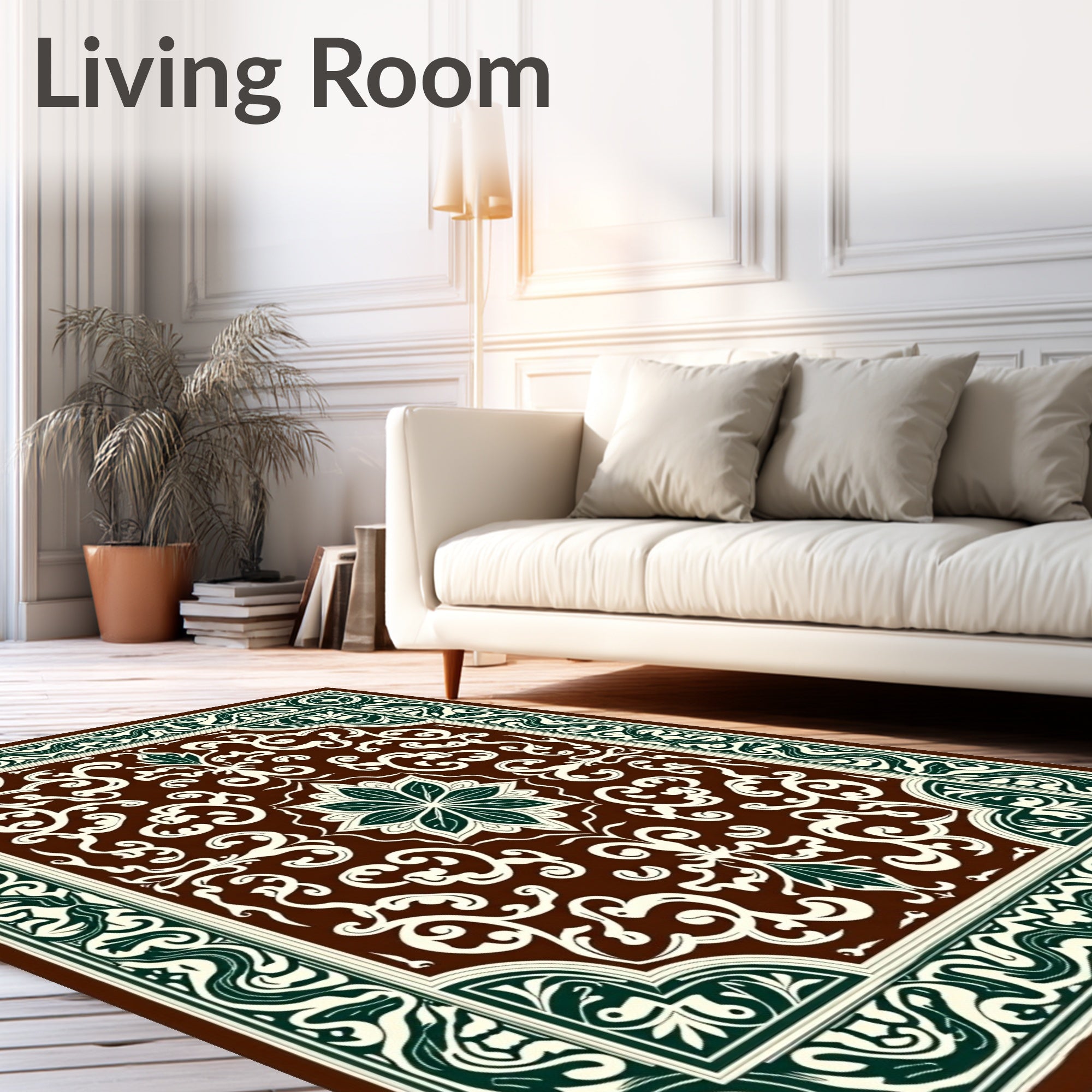 Flatwoven High Traffic Area Rug, Paisley Whorl Arabesque Classic Patterned, Non Slip, Stain Resistant, Washable Area Rugs for Living Room, Bedroom (Brown) Overview: