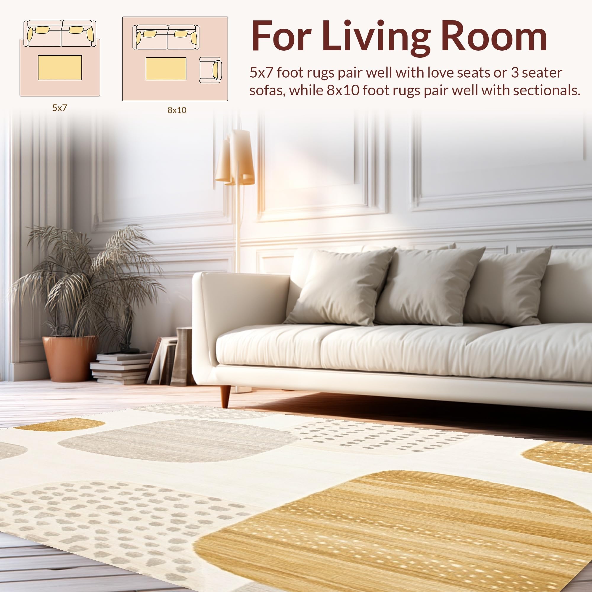 Ultra Soft Area Rug, Non Slip, Stain Resistant, Washable Area Rugs for Living Room, Bedroom, Palomino Beige Cow Print Area Modern Animal Skin Design(Beige) Overview: