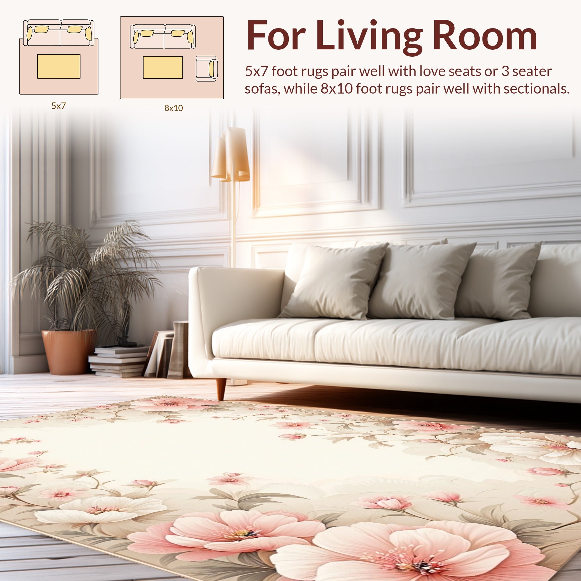 Flatwoven High Traffic Area Rug, Pastel Floral Blossom, Non Slip, Stain Resistant, Washable Area Rugs for Living Room, Bedroom (Pink) Overview: