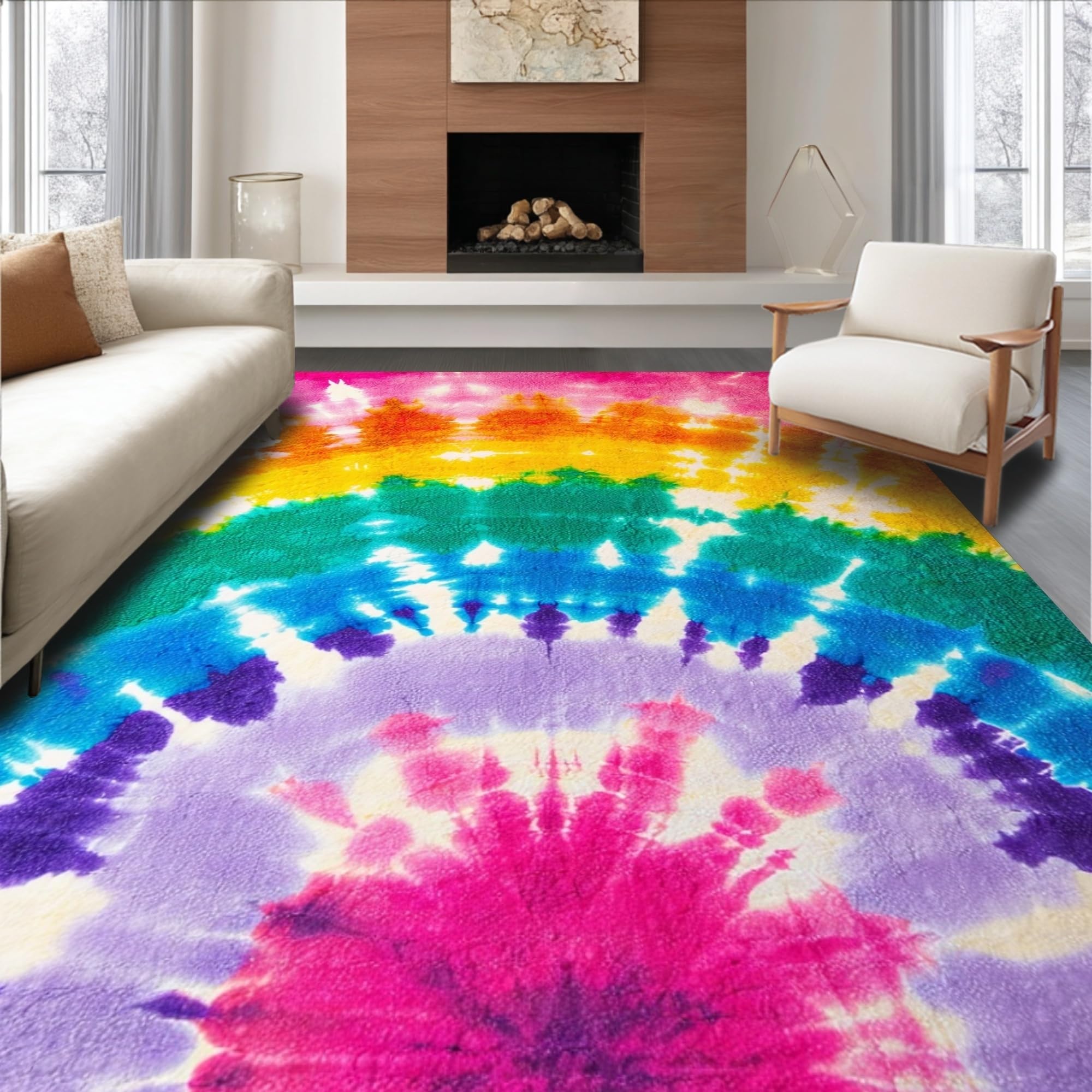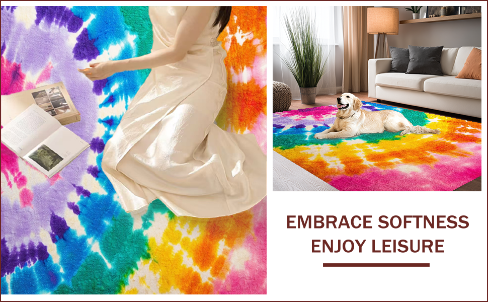 Ultra Soft Area Rug, Non Slip, Stain Resistant, Washable Area Rugs for Living Room, Bedroom, Pastel Tie Dye Girls Bedroom Fluffy Area Rug(Pink) Overview: