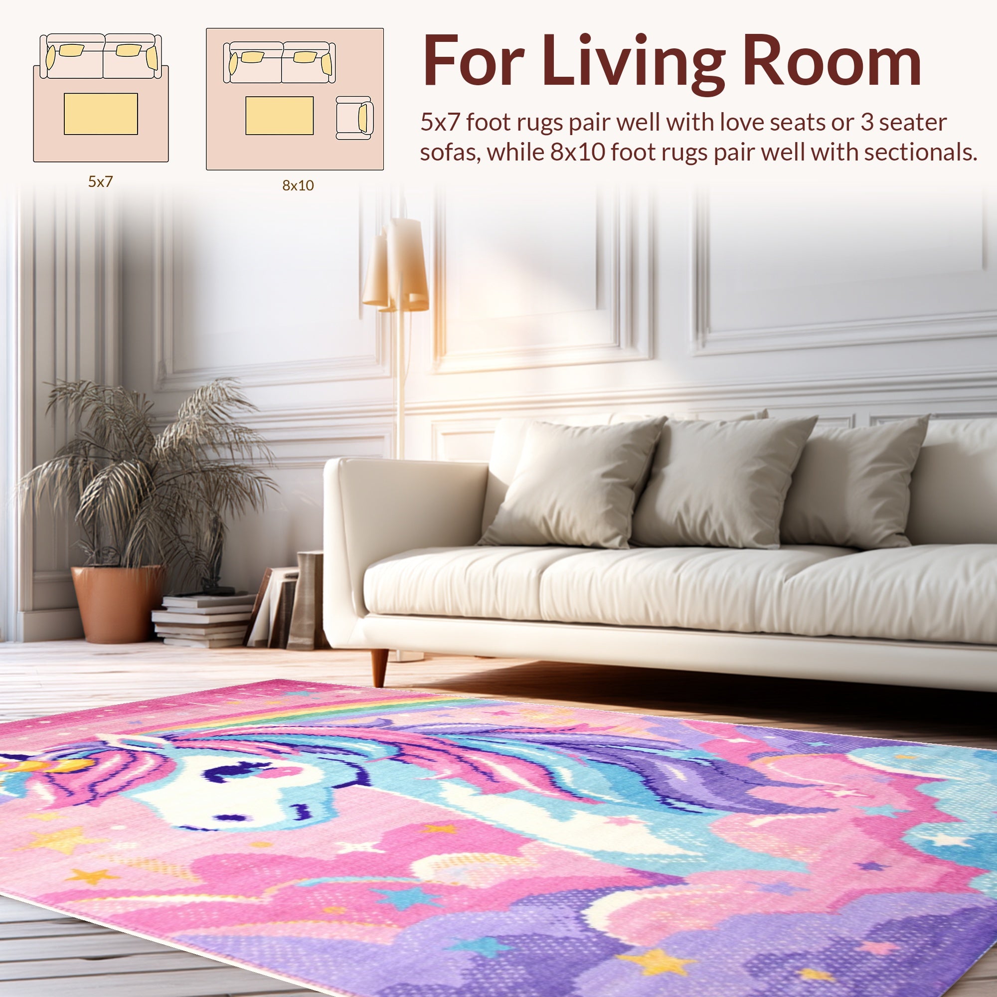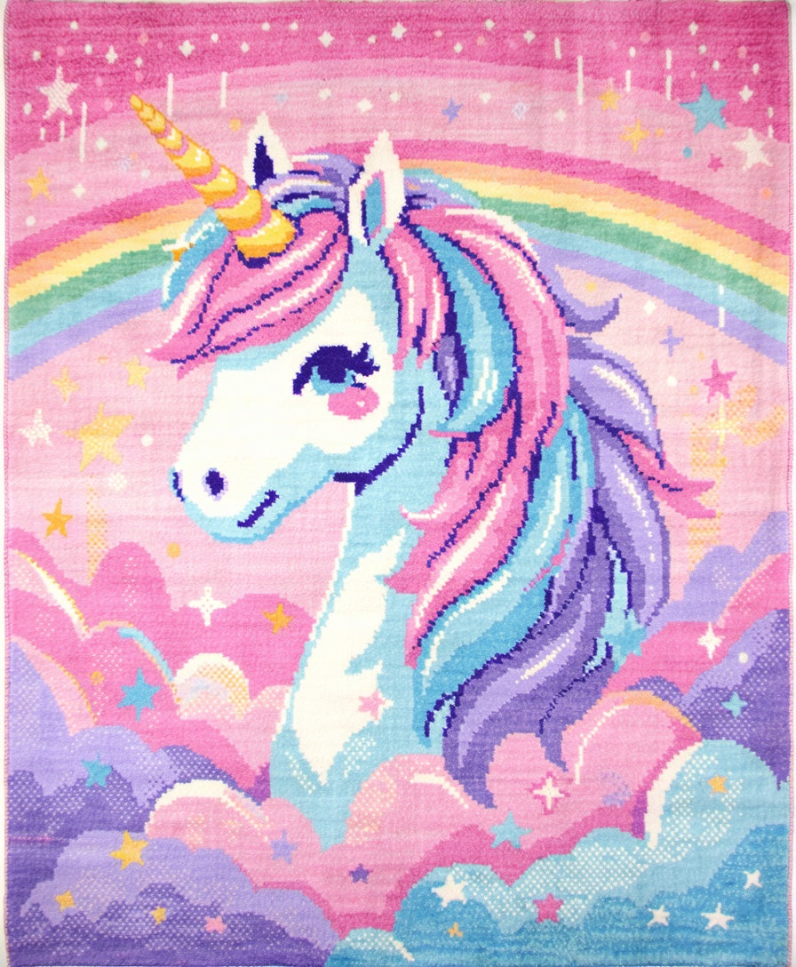 Flatwoven High Traffic Area Rug, Pastel Unicorn Rainbow for Girls Nursery, Non Slip, Stain Resistant, Washable Area Rugs for Living Room, Bedroom (Red) Overview: