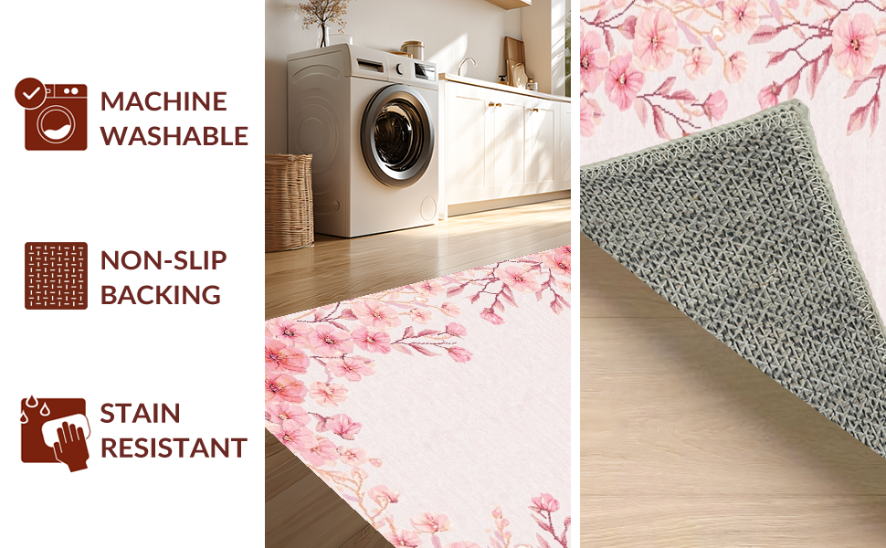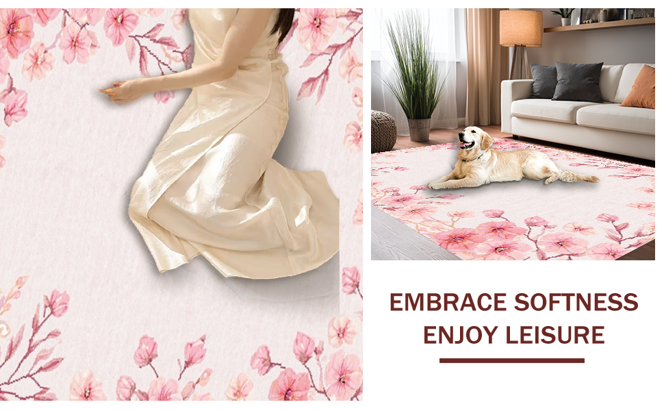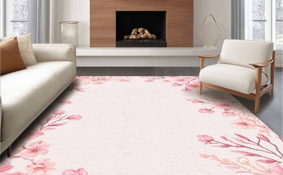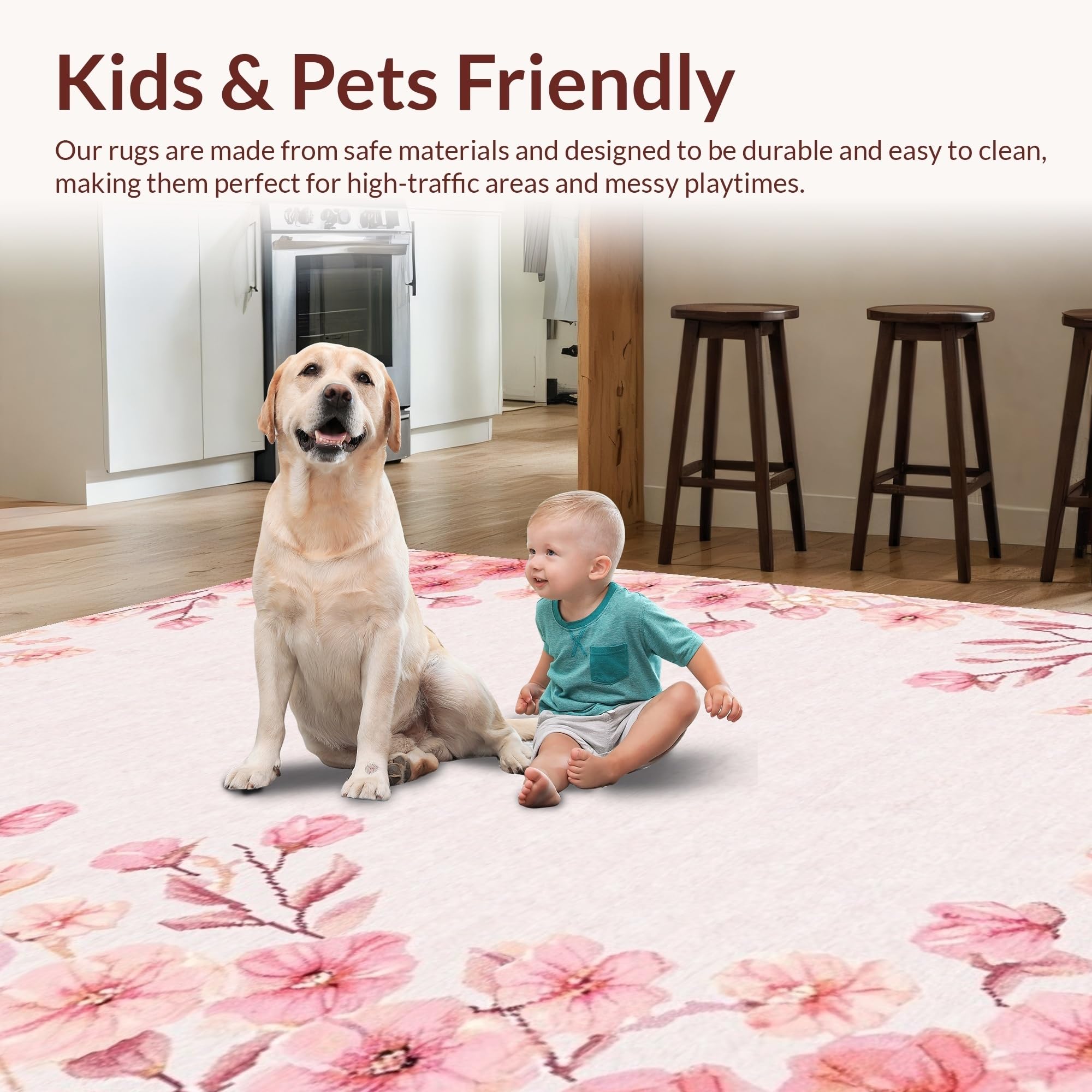 Ultra Soft Area Rug, Non Slip, Stain Resistant, Washable Area Rugs for Living Room, Bedroom, Pastel Whimsical Blossom Pattern(Pink) Overview: