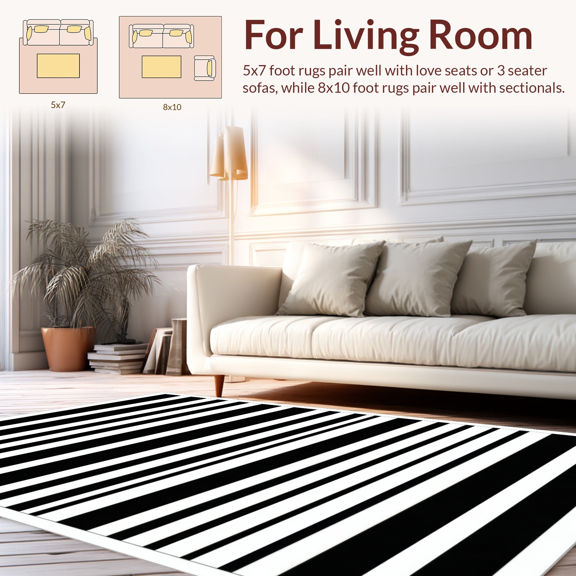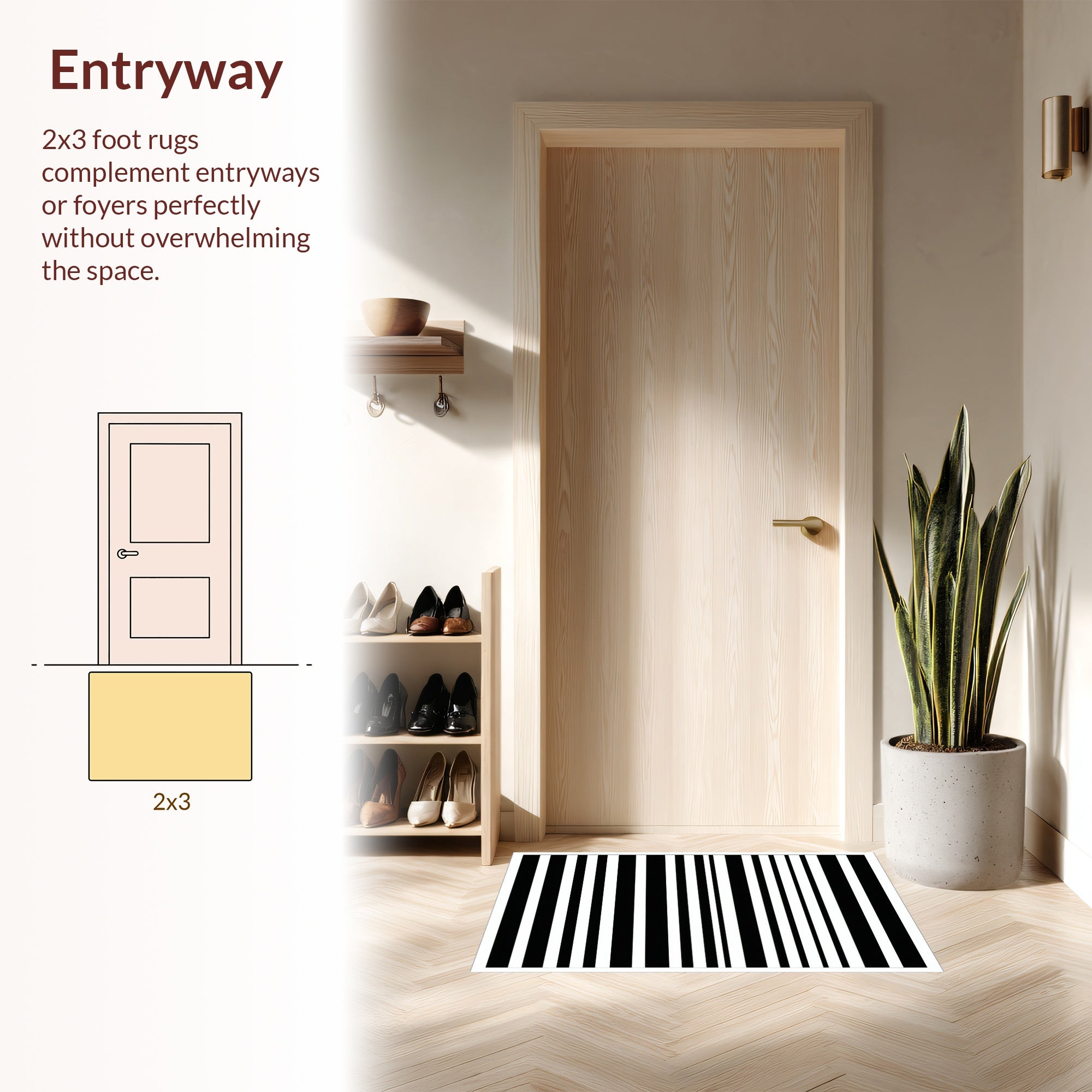 Flatwoven High Traffic Area Rug, Piano Key Striped Minimalist Black & Design, Non Slip, Stain Resistant, Washable Area Rugs for Living Room, Bedroom (Black) Overview: