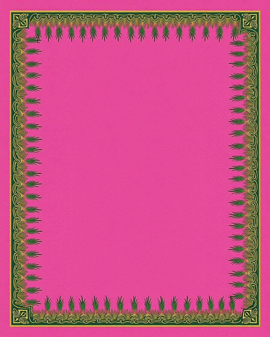Pine Branch Motif Pile Accent with Evergreen Swirls(Pink)